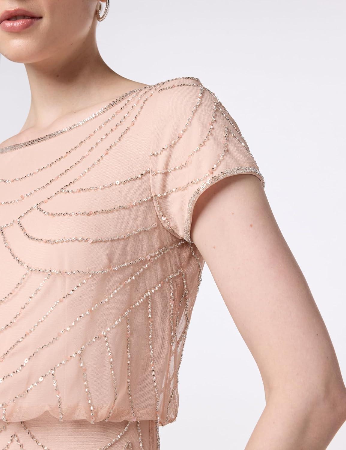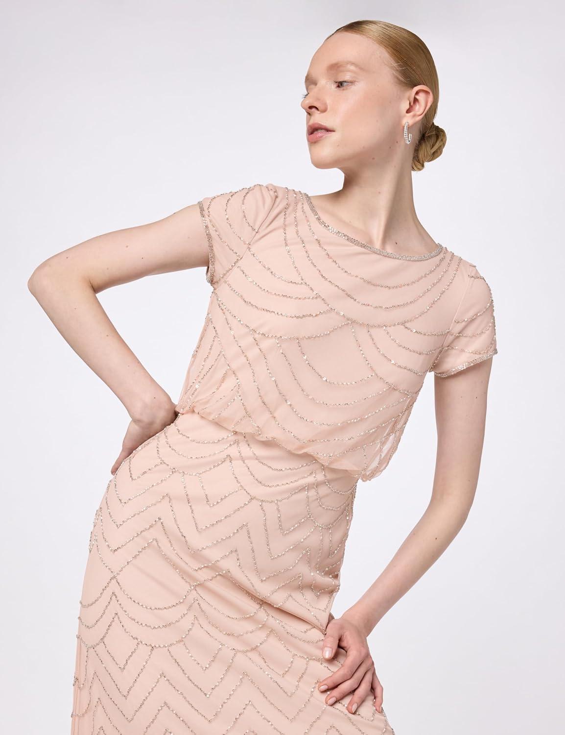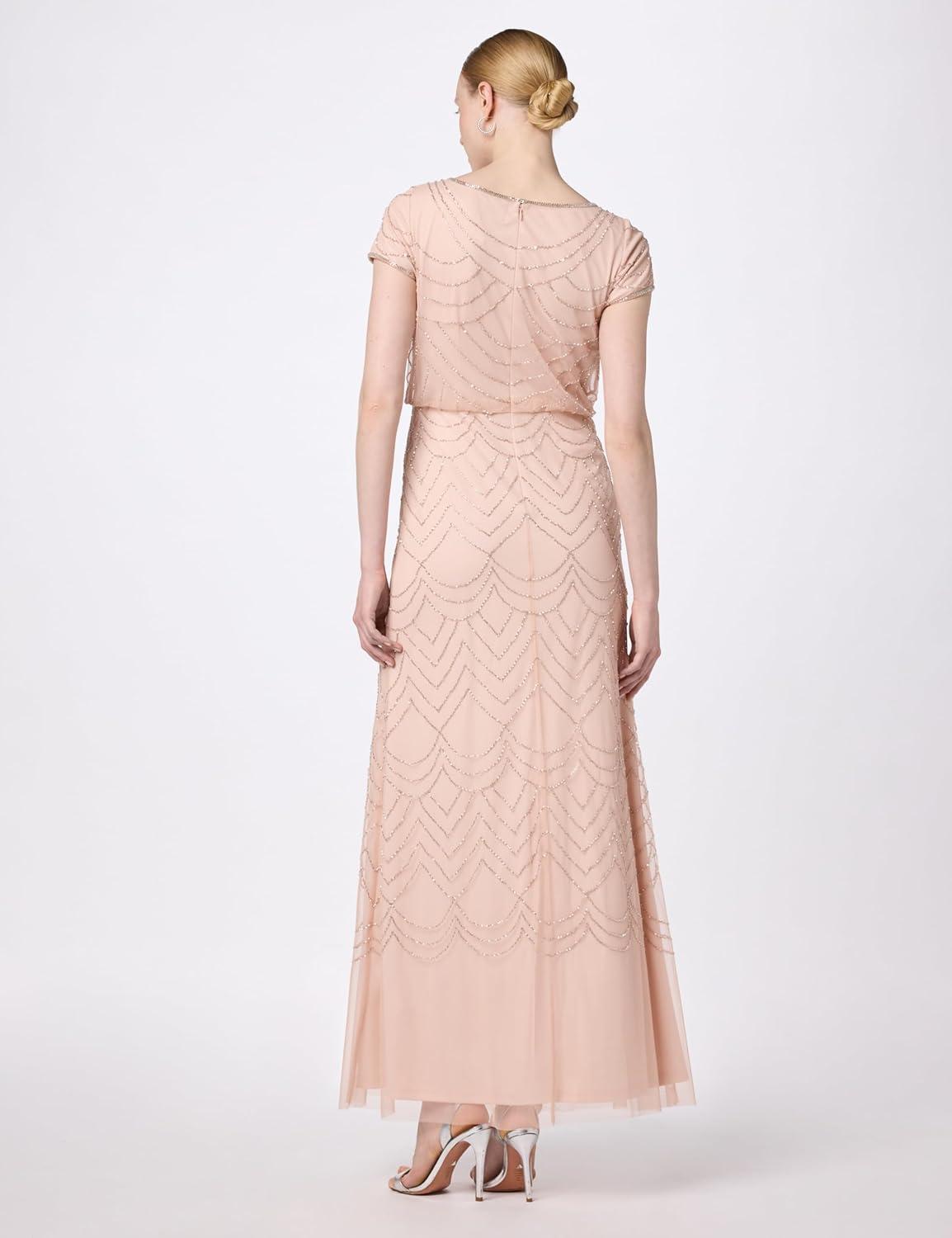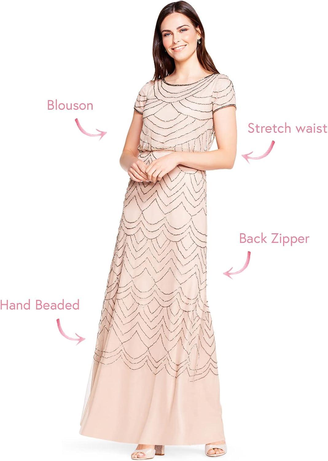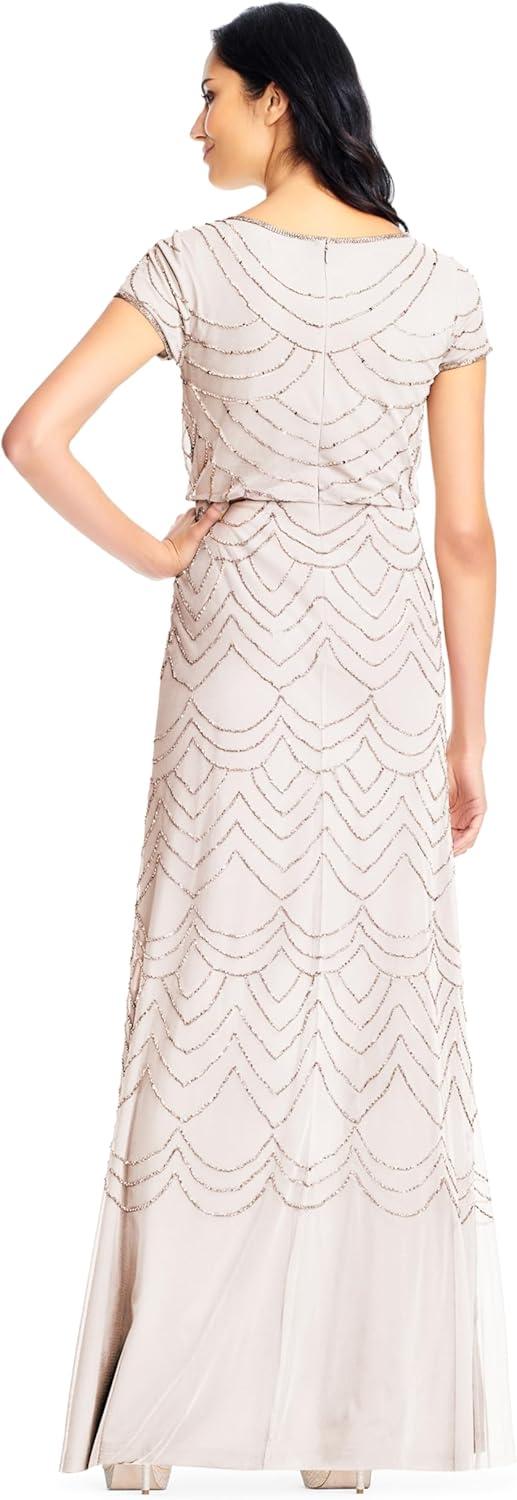 • Adrianna Papell Women’s Short Sleeve Blouson Beaded Gown(Blush)