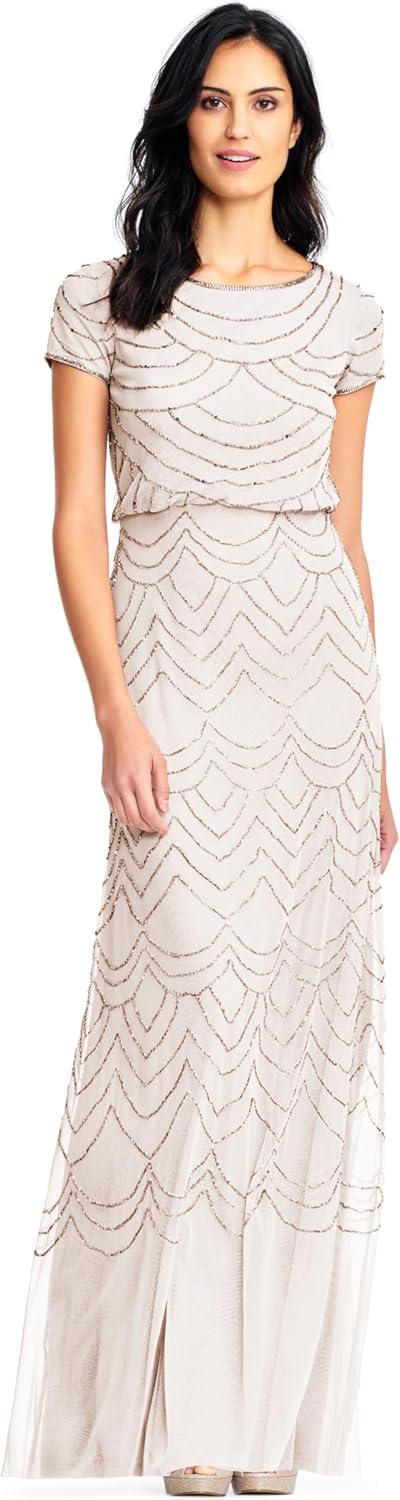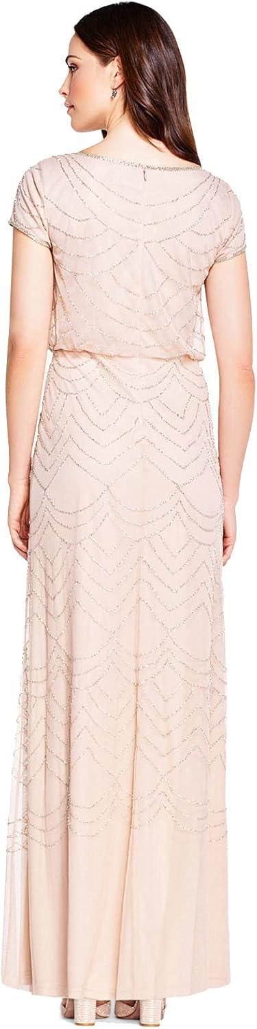 Adrianna Papell Women’s Short Sleeve Blouson Beaded Gown(Blush)