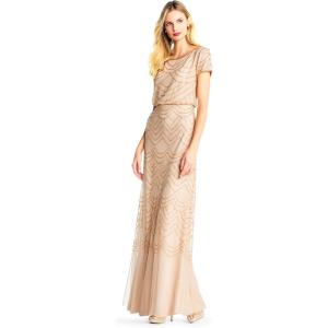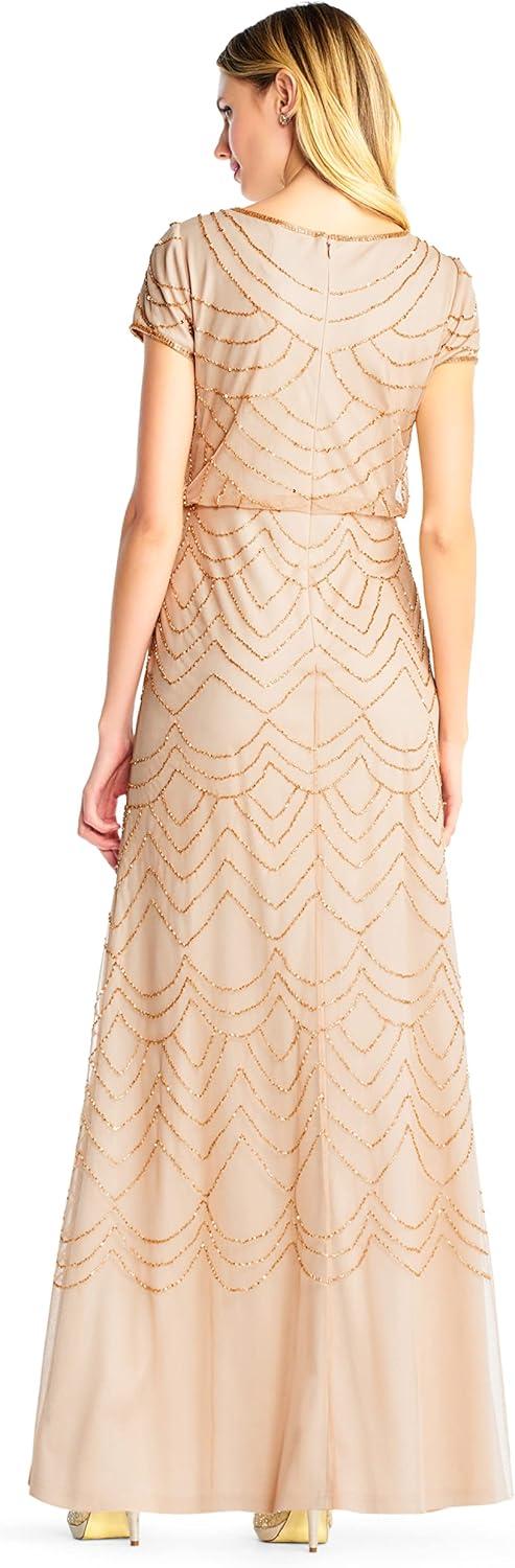 Adrianna Papell Women’s Short Sleeve Blouson Beaded Gown(Blush/Gold)