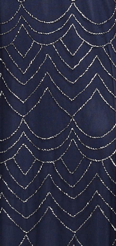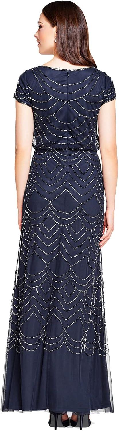 Adrianna Papell Women’s Short Sleeve Blouson Beaded Gown(Navy)