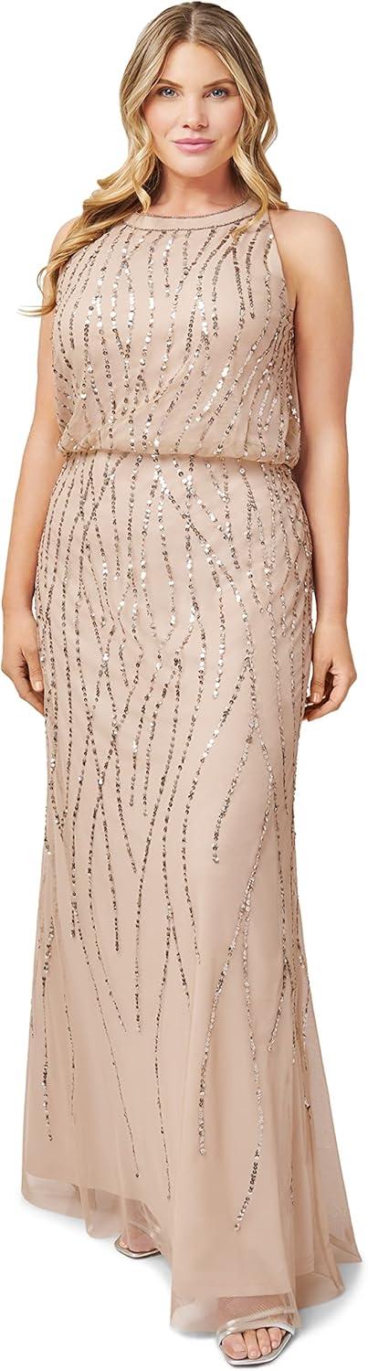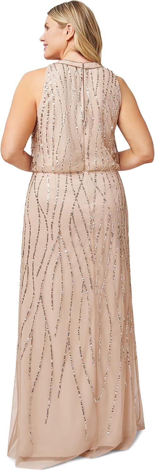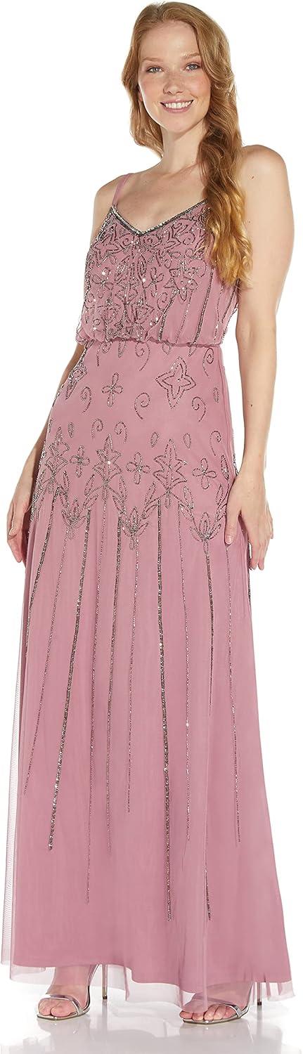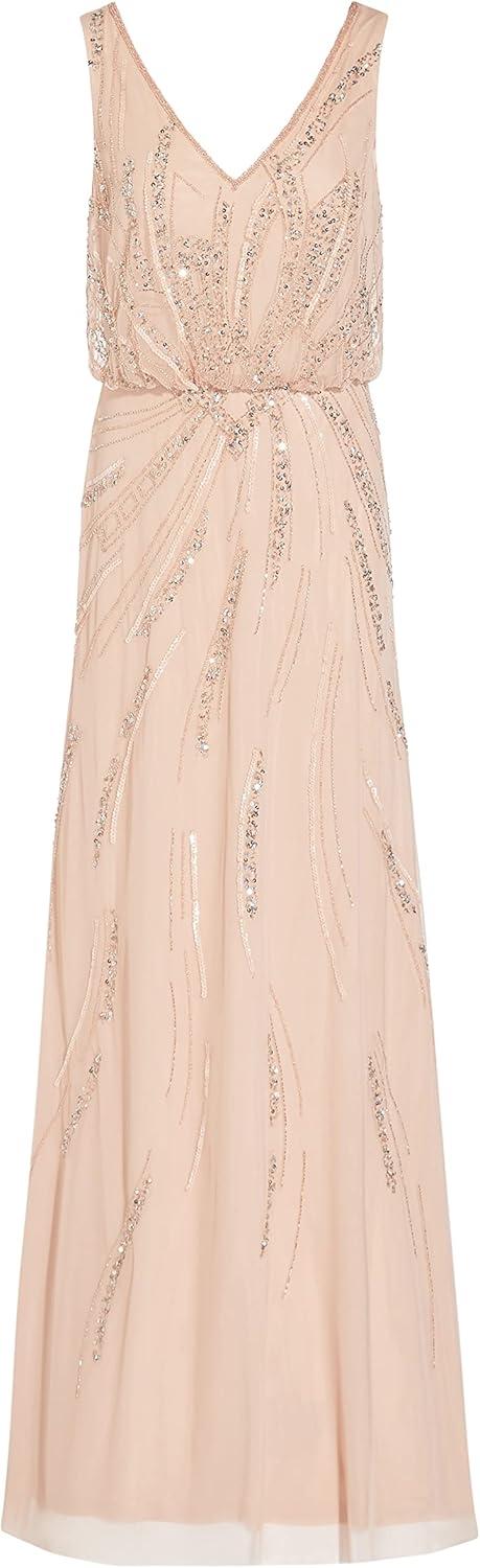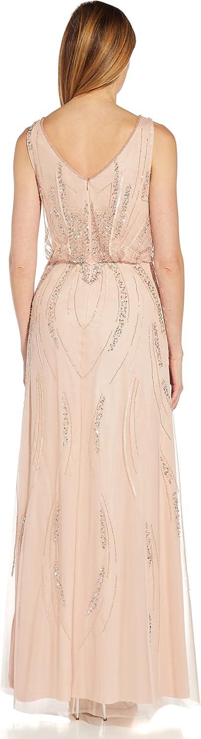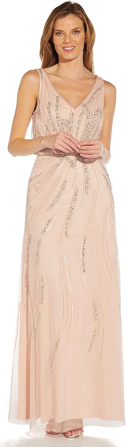 Adrianna Papell Women’s Long Beaded Dress(Blush)