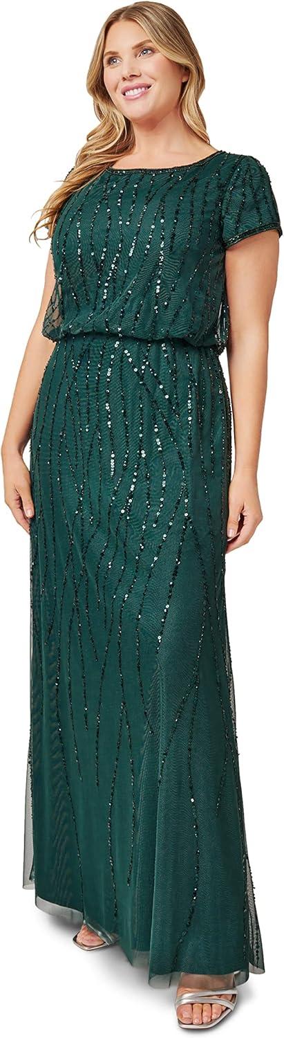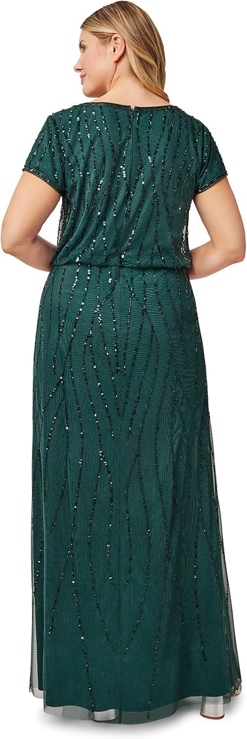 Adrianna Papell Women’s Beaded Blouson Dress(Dusty Emerald)