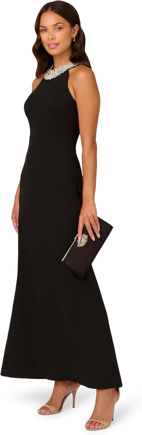 Adrianna Papell Women’s Beaded Halter Gown(Black)