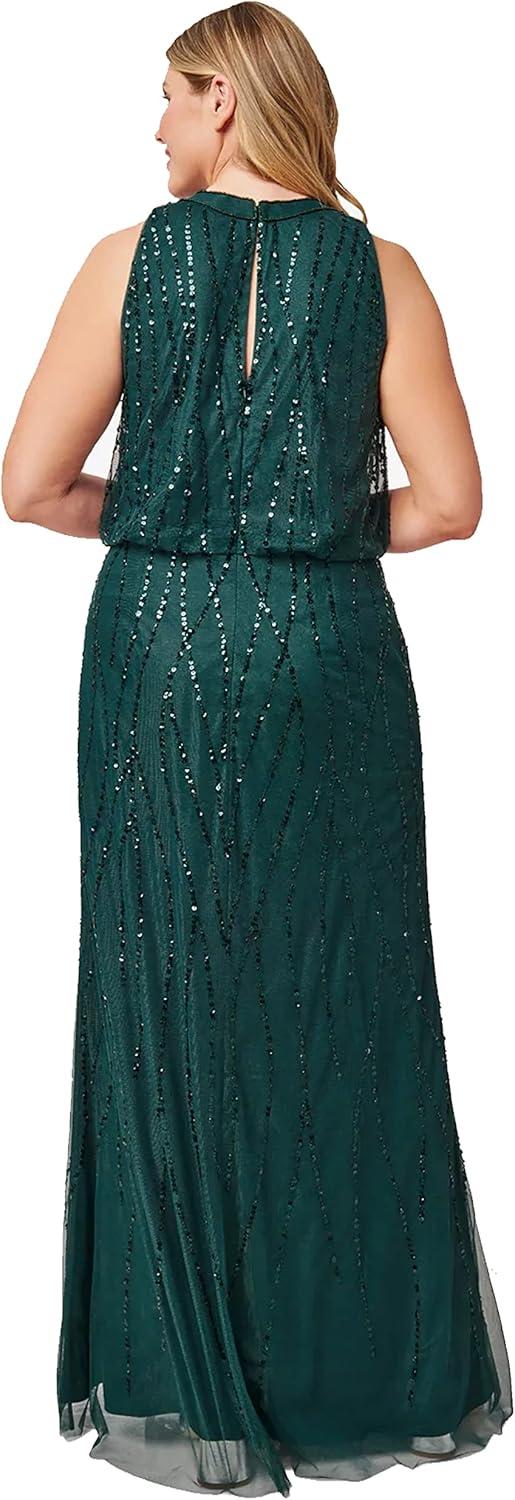 Adrianna Papell Women’s Beaded Halter Gown(Dusty Emerald)