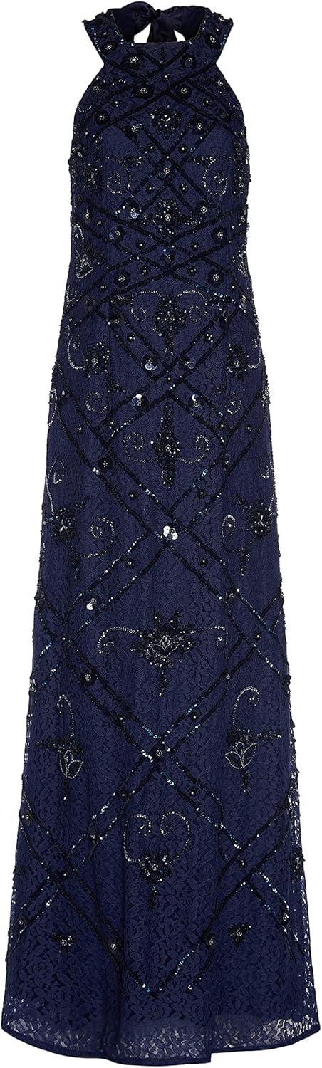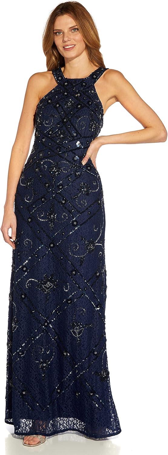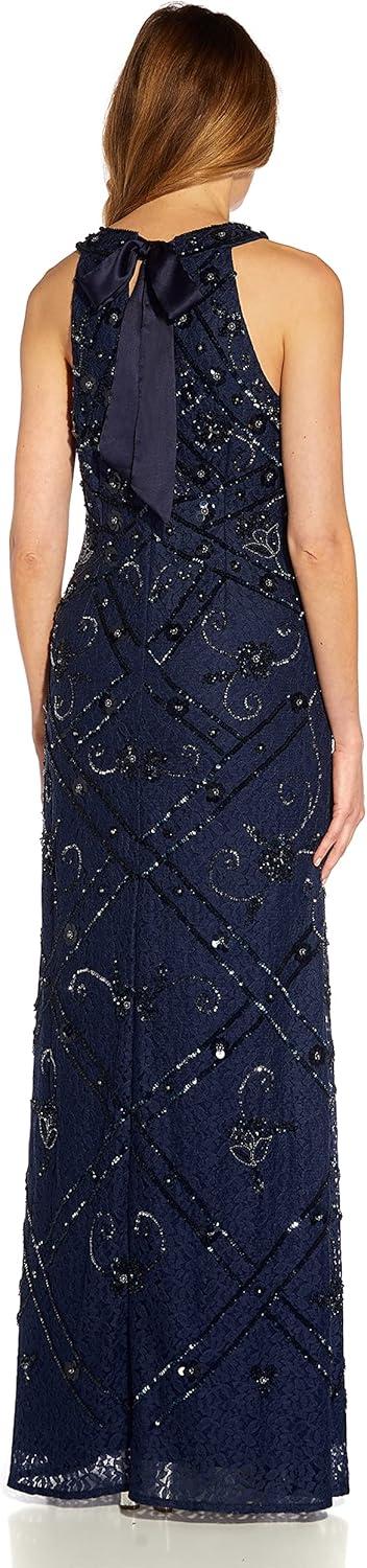 Adrianna Papell Women’s Beaded Halter Gown(Light Navy)