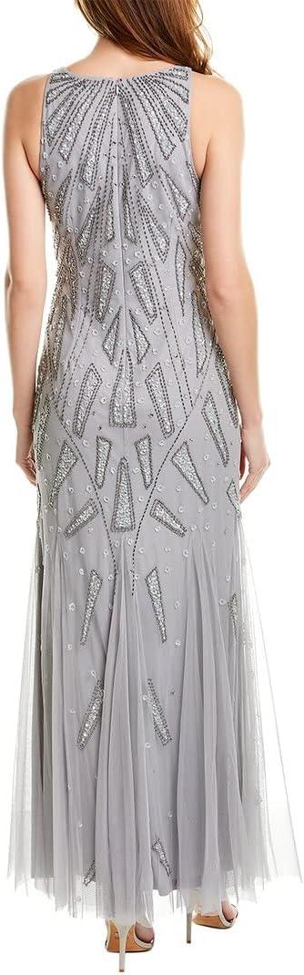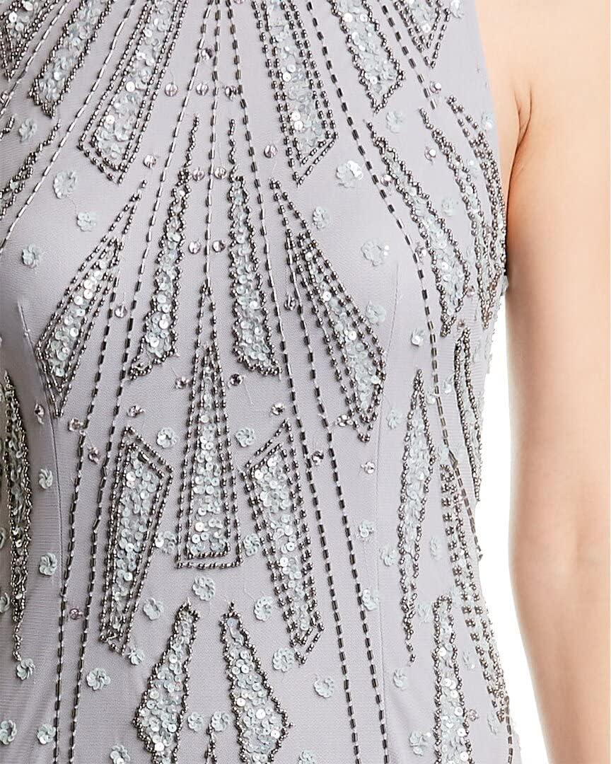 Adrianna Papell Women’s Beaded Halter Gown(Silver Mist)
