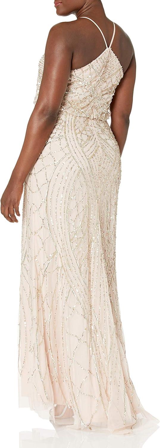 Adrianna Papell Women’s Beaded Halter Gown(Nude)