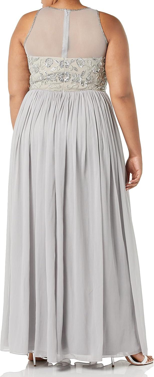 Adrianna Papell Women’s Bead Bodice Long Chiffon Dress(Bridal Silver)
