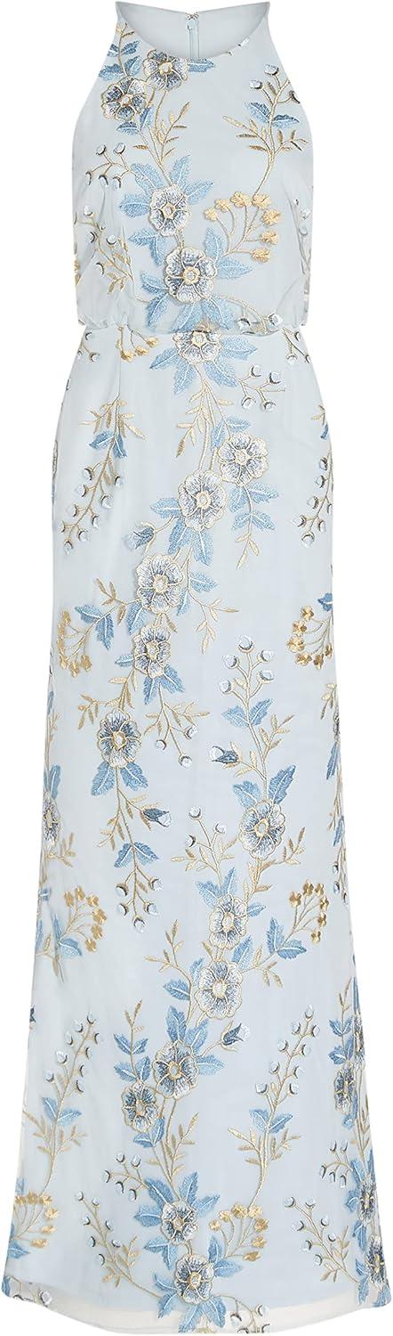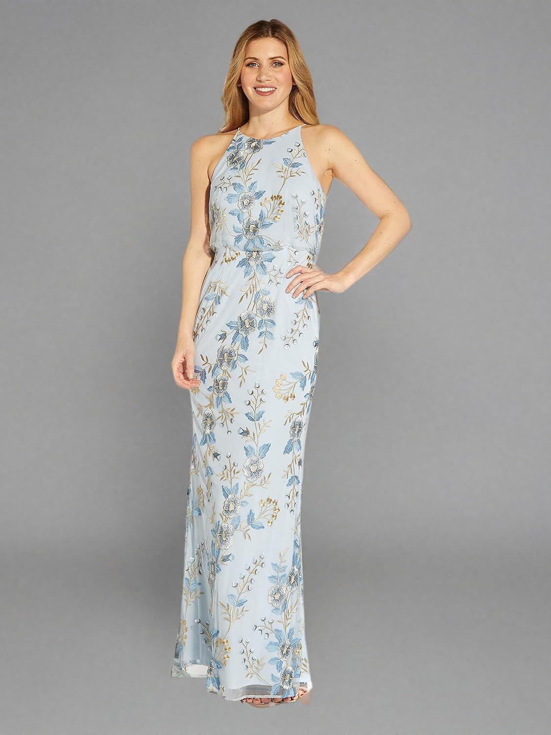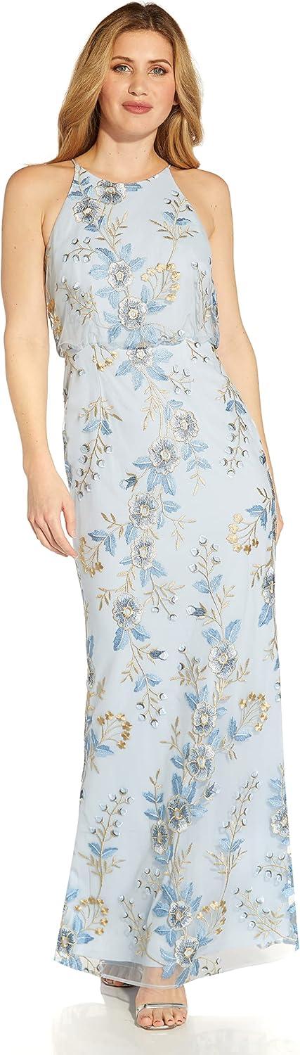 Adrianna Papell Women’s Embroidered Blouson Gown(Sky Blue)