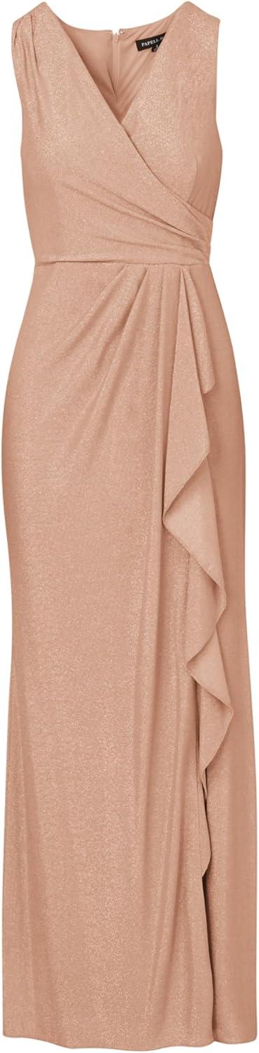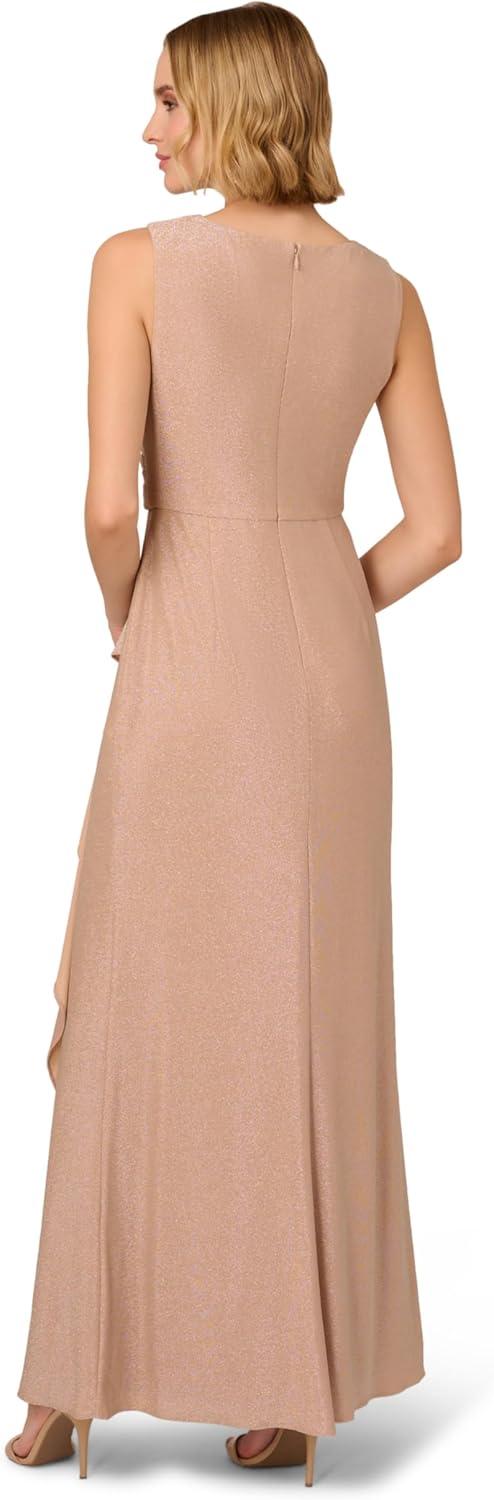 Adrianna Papell Women’s Metallic Knit Draped Gown(Biscotti)