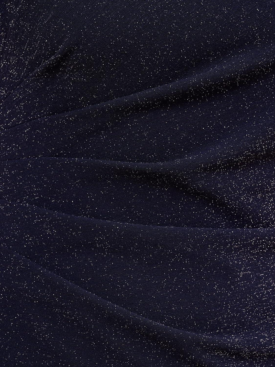 Adrianna Papell Women’s Metallic Knit Draped Gown(Light Navy)