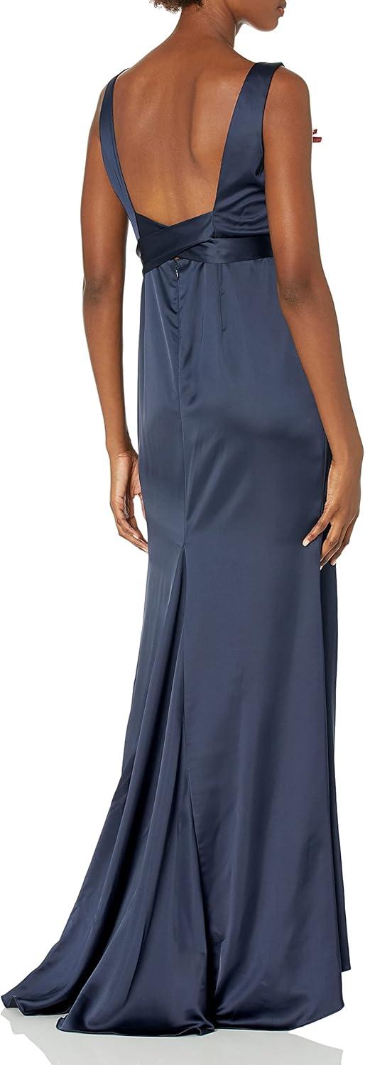 Adrianna Papell Women’s Satin Open Bow Back Dress, Midnight, 4