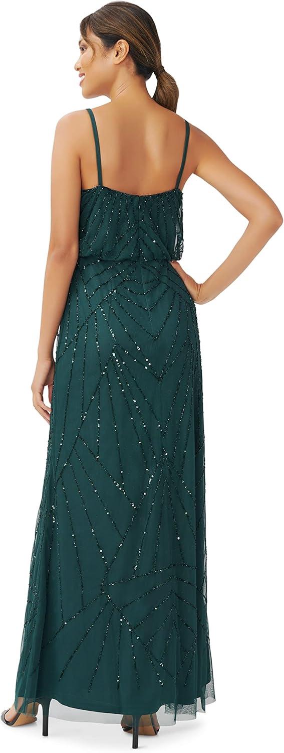 Adrianna Papell womens Beaded Tank Blouson Gown(Dusty Emerald)