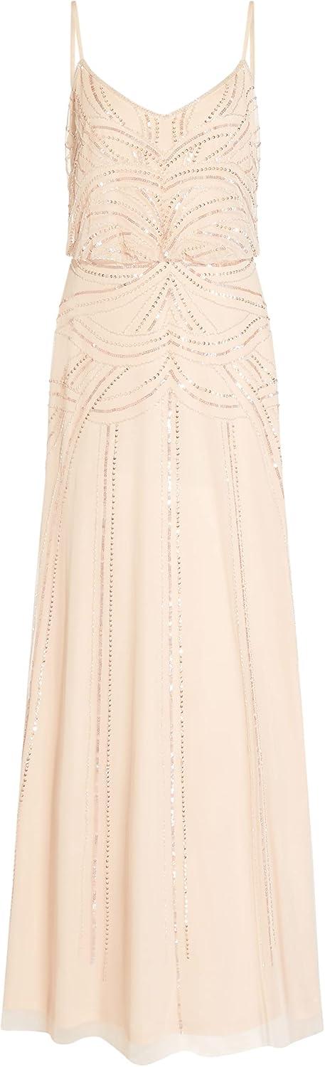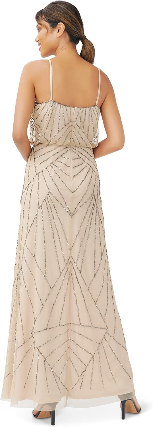 Adrianna Papell womens Beaded Tank Blouson Gown(Nude)