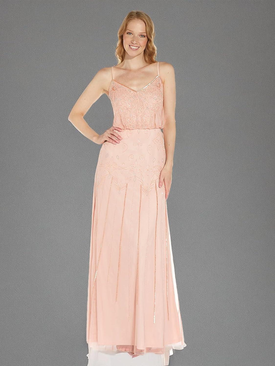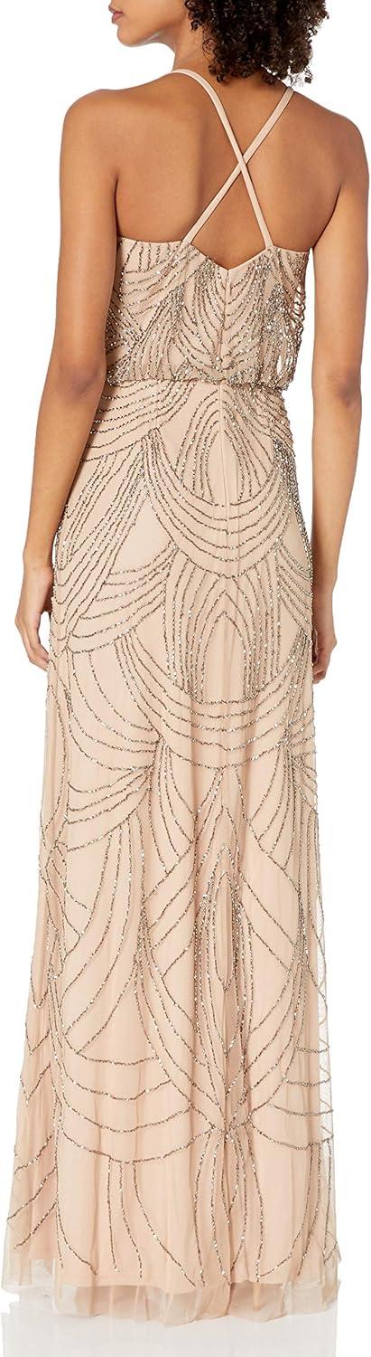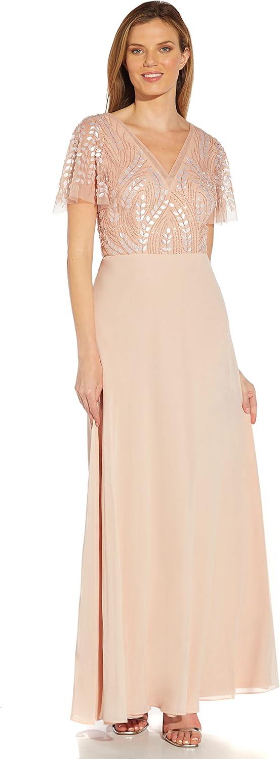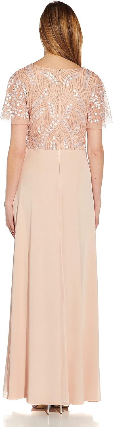Adrianna Papell Womens Beaded Chiffon Gown(Blush)