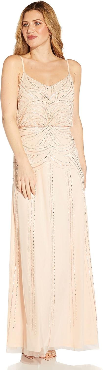 Adrianna Papell Womens Beaded Blouson Gown(Blush)
