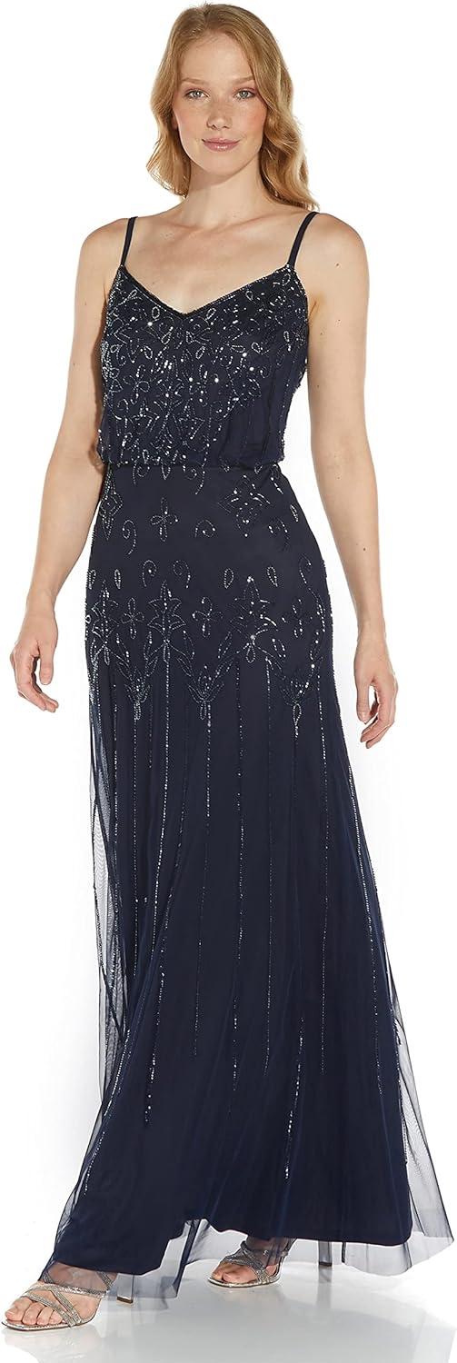 Adrianna Papell Womens Beaded Blouson Gown(Navy)