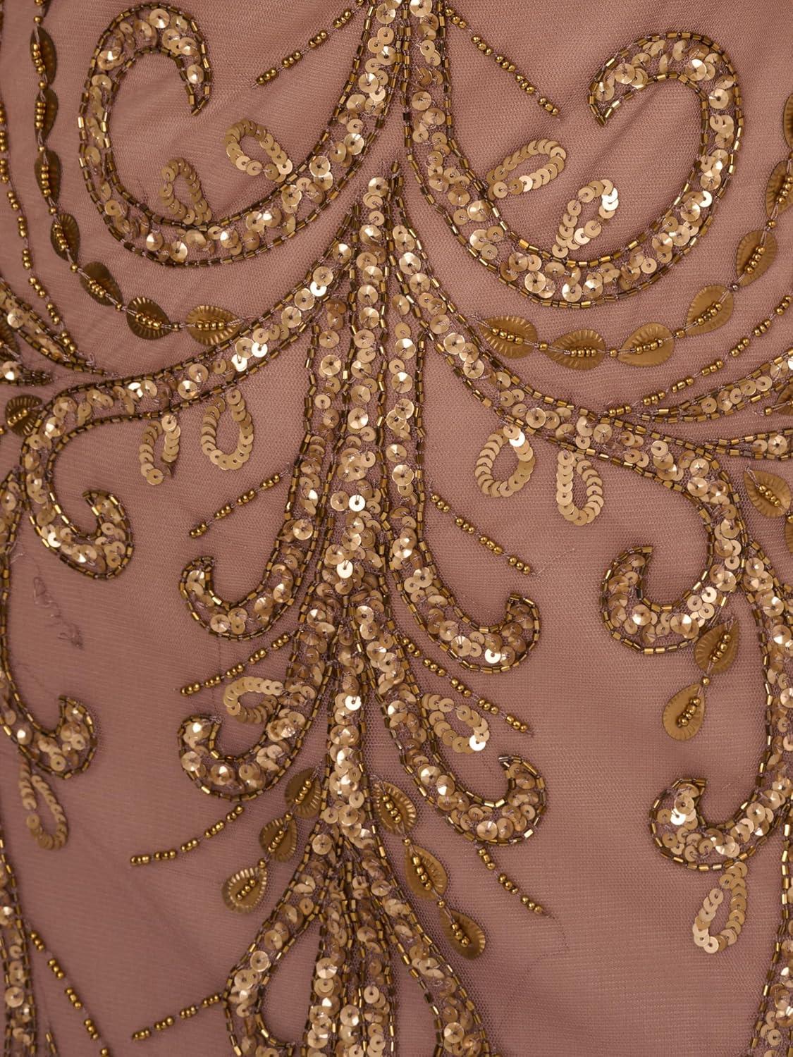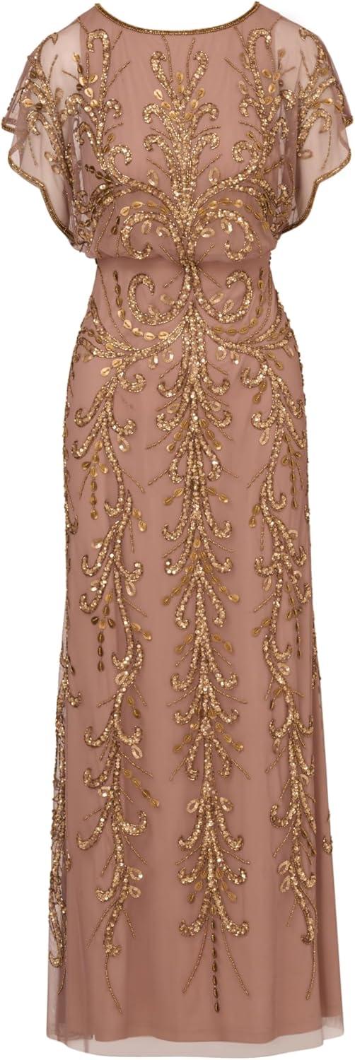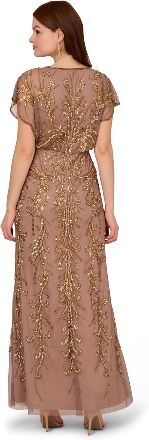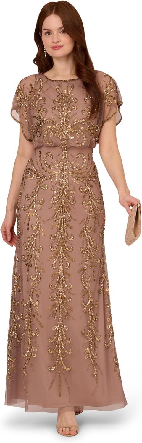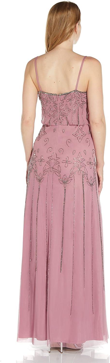Adrianna Papell Womens Beaded Blouson Gown(Rose/Mercury)