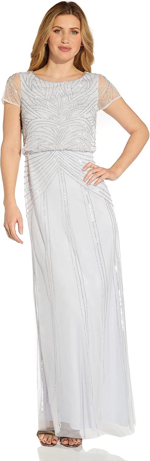 Adrianna Papell Womens Beaded Blouson Gown(Serenity)