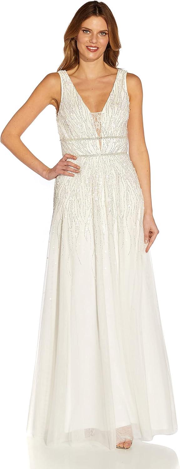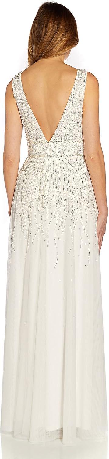 Adrianna Papell Womens Beaded Chiffon Gown(Ivory)