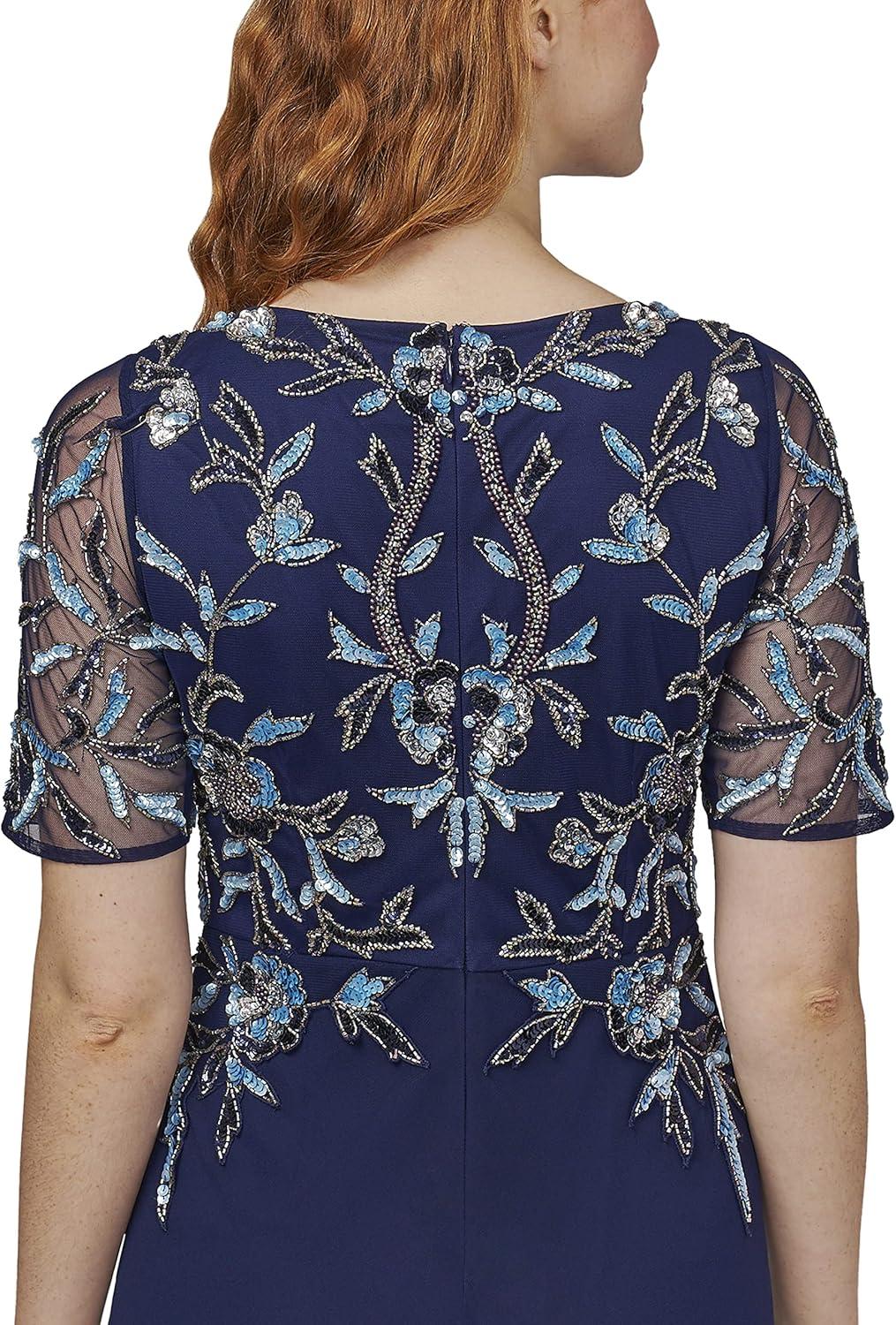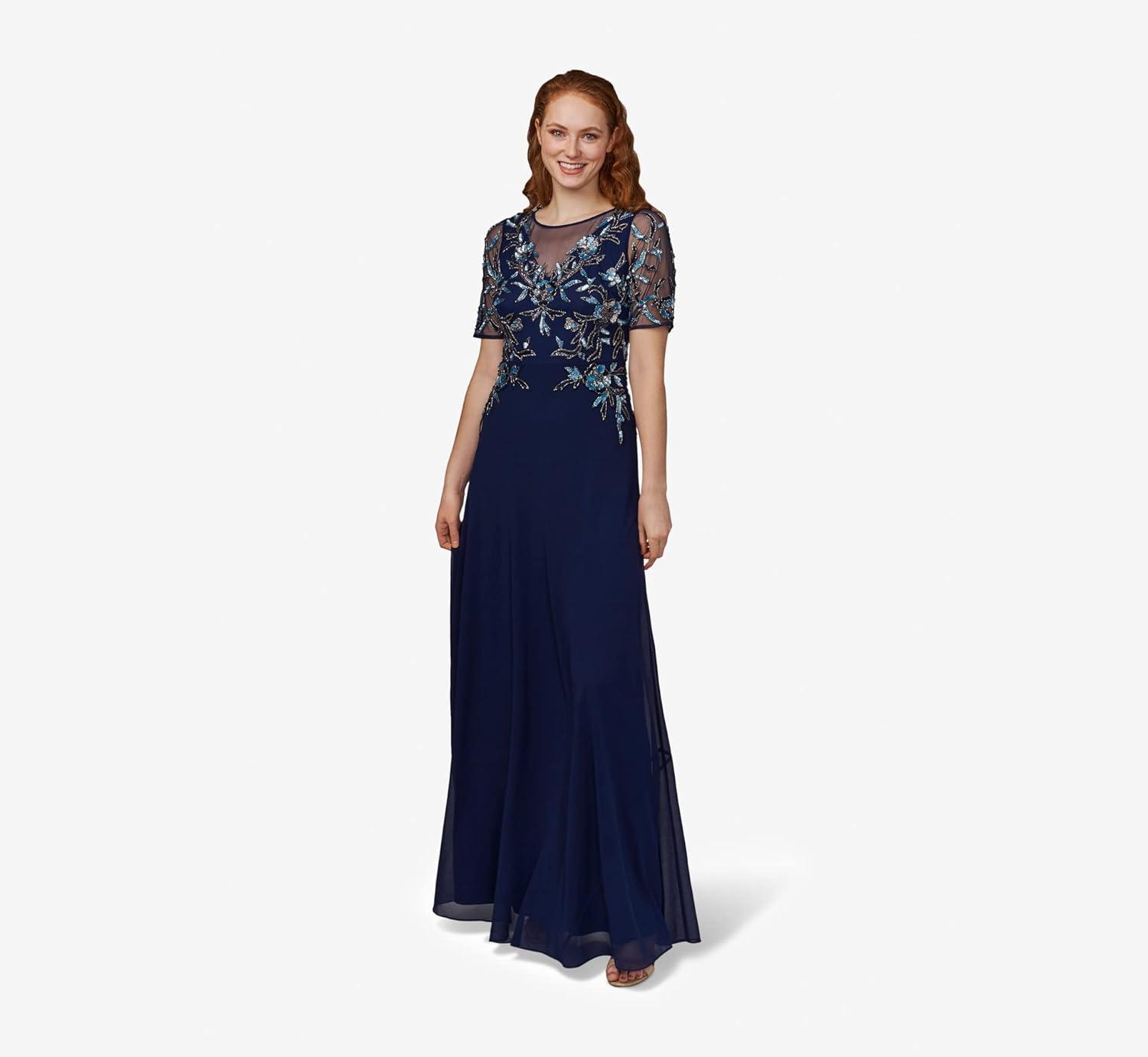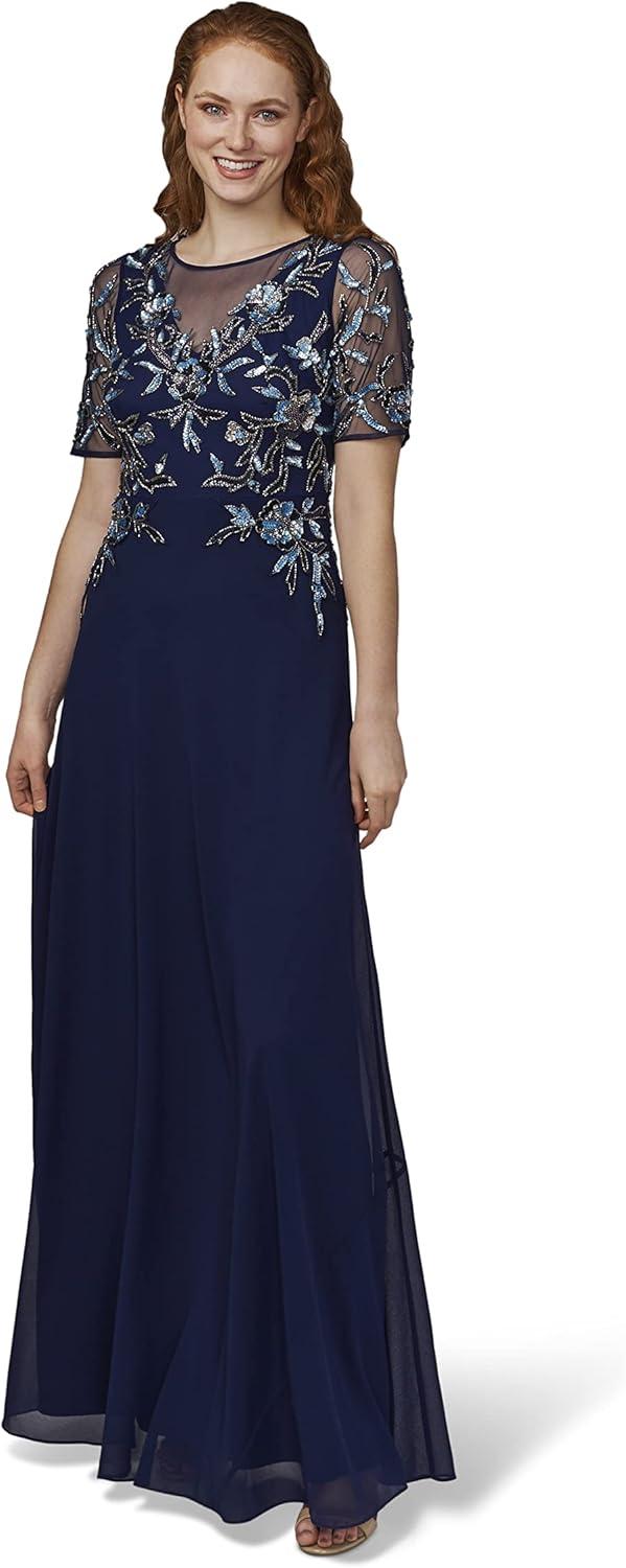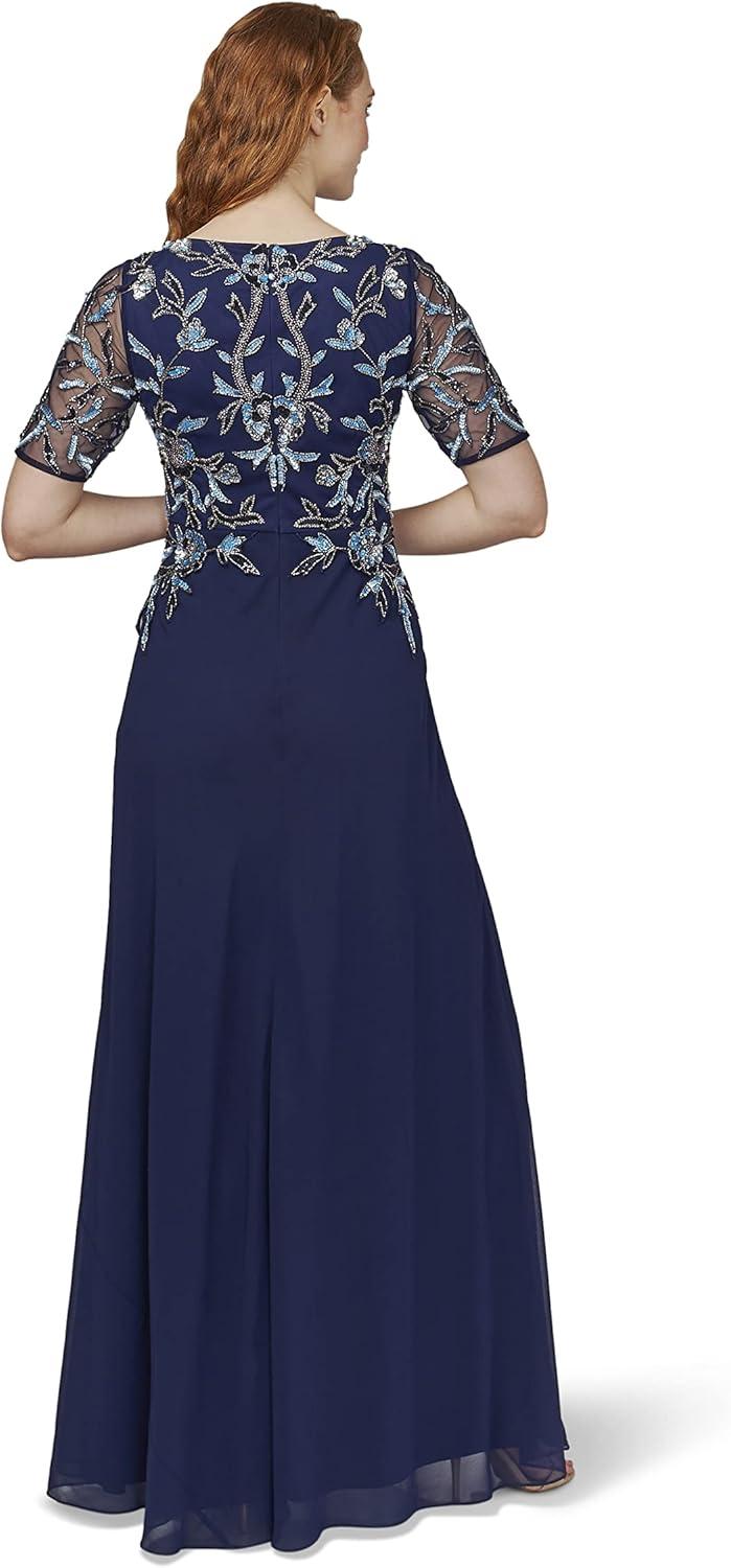 Adrianna Papell Womens Beaded Chiffon Gown(Light Navy)