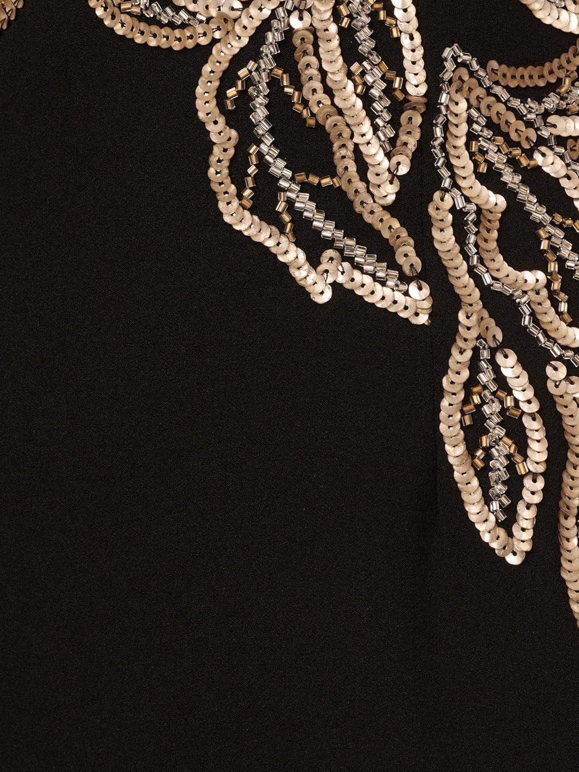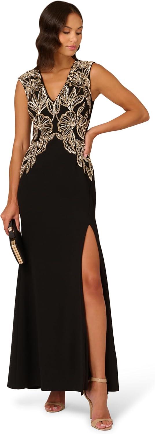 Adrianna Papell Women’s Beaded Crepe Long Dress, Black