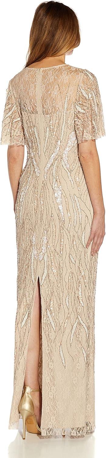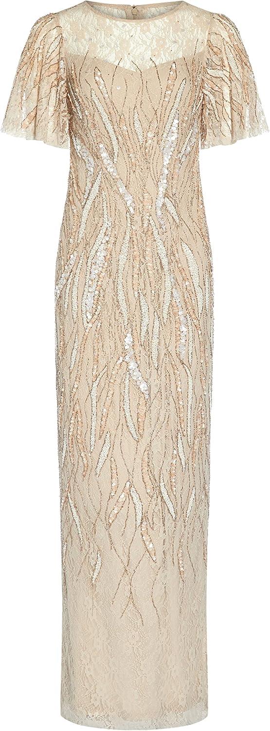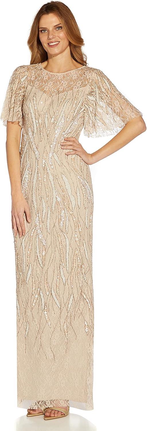 Adrianna Papell Women’s Beaded Flutter Sleeve Gown(Biscotti)