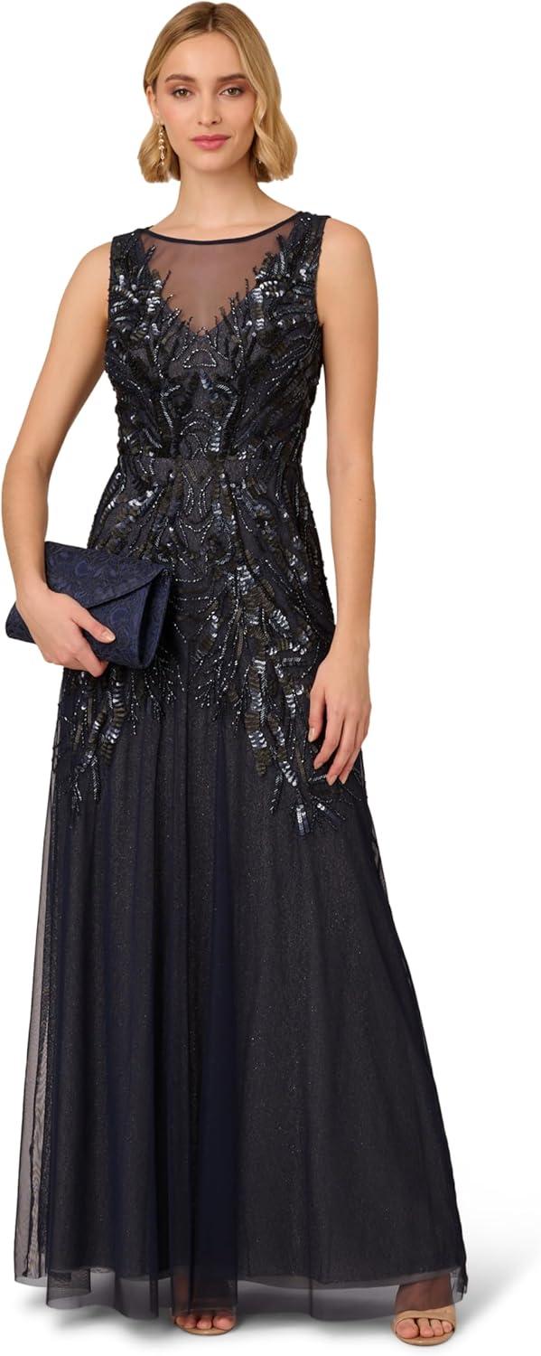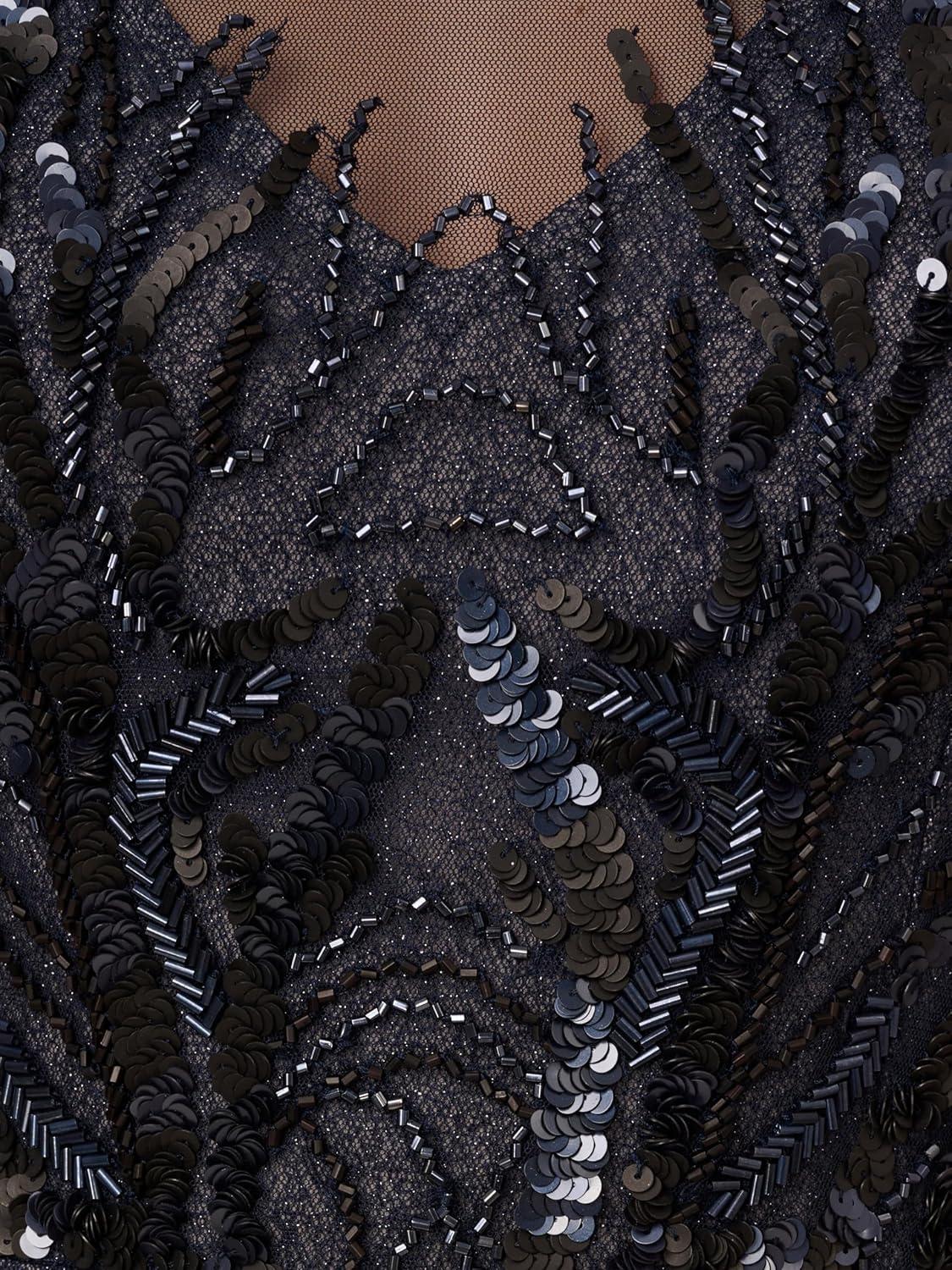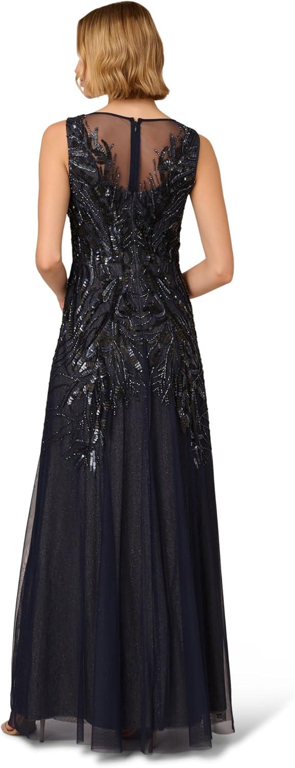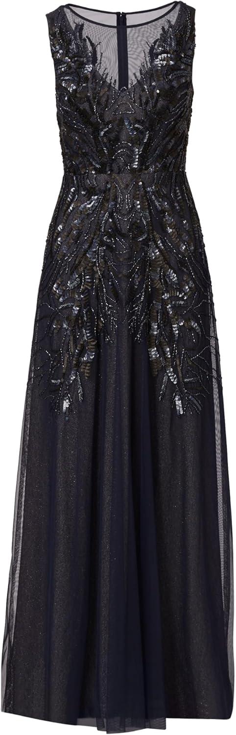 Adrianna Papell Women’s Bead Metallic Mesh Dress(Navy/Silver)