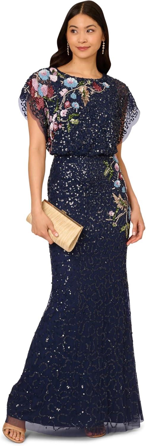 Adrianna Papell Women’s Beaded Mermaid Long Dress(Midnight Multi)