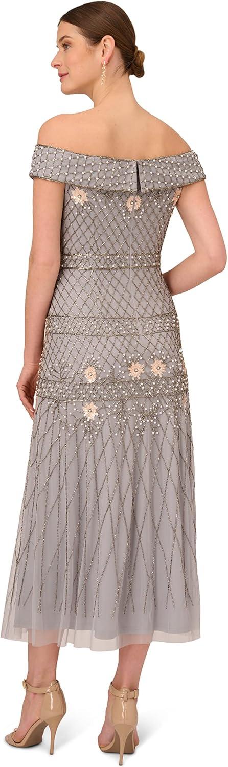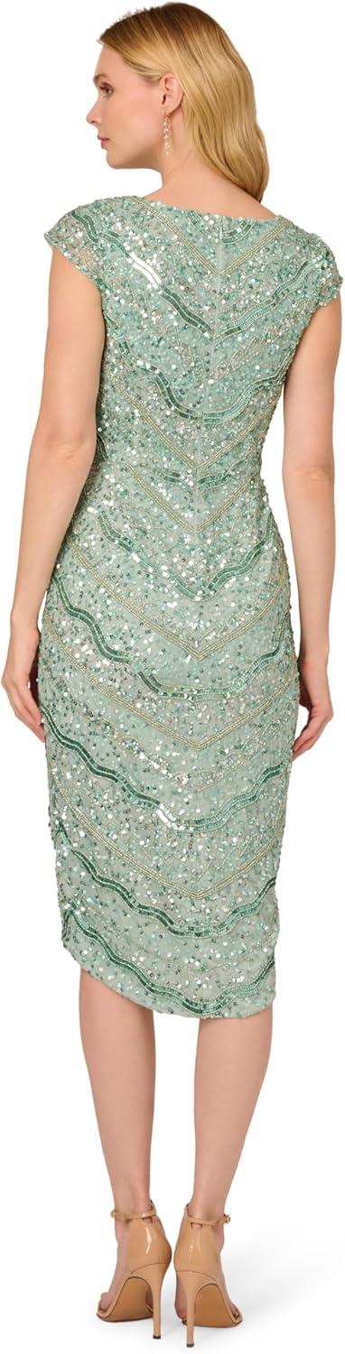 Adrianna Papell Women’s Beaded Mesh Dress(Icy Sage)