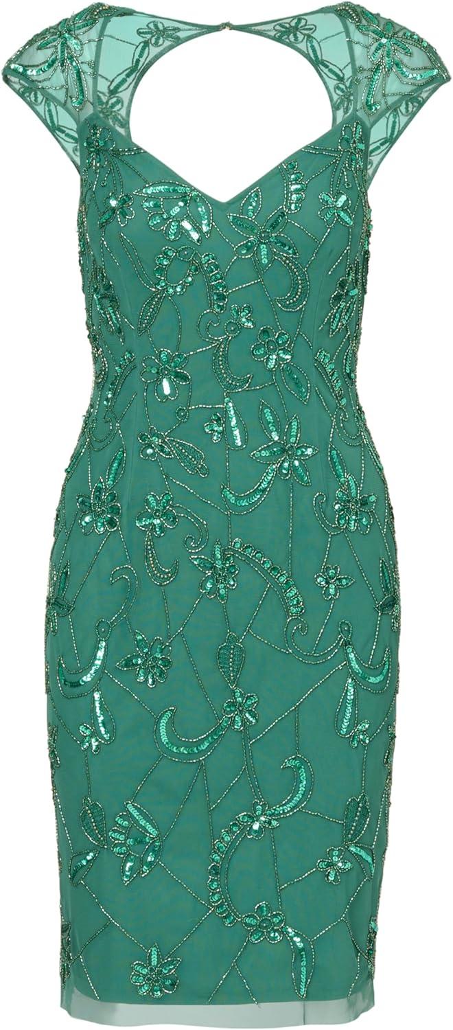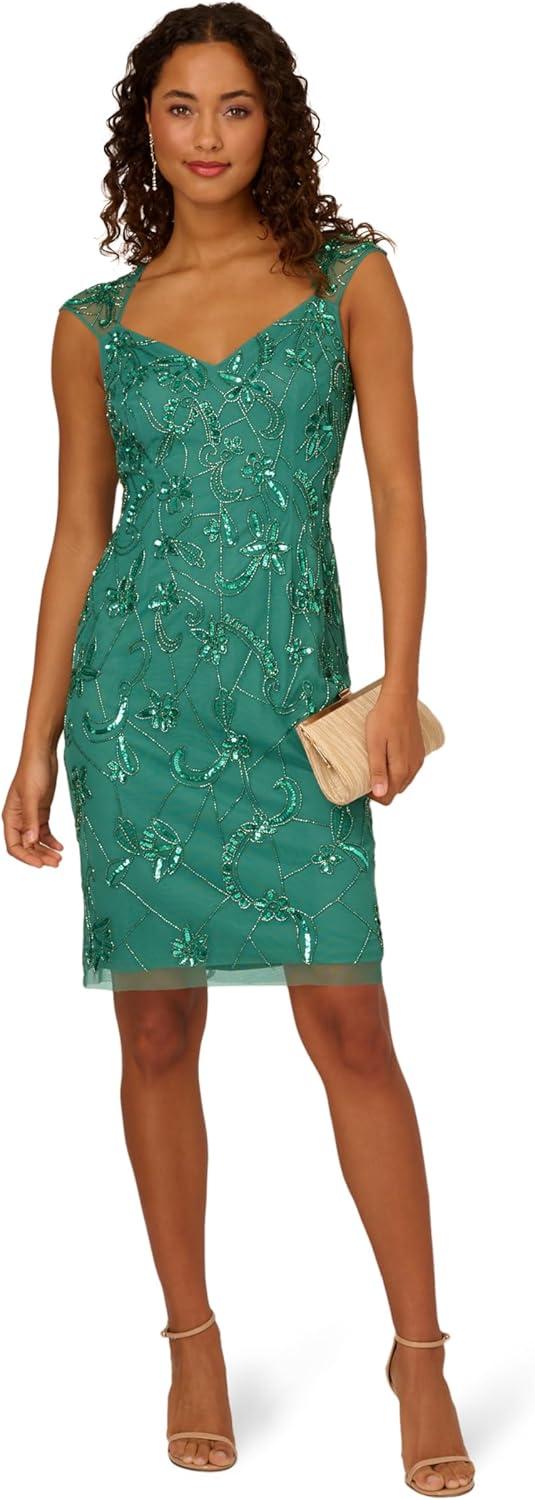 Adrianna Papell Women’s Beaded Mesh Dress(Jungle Green)