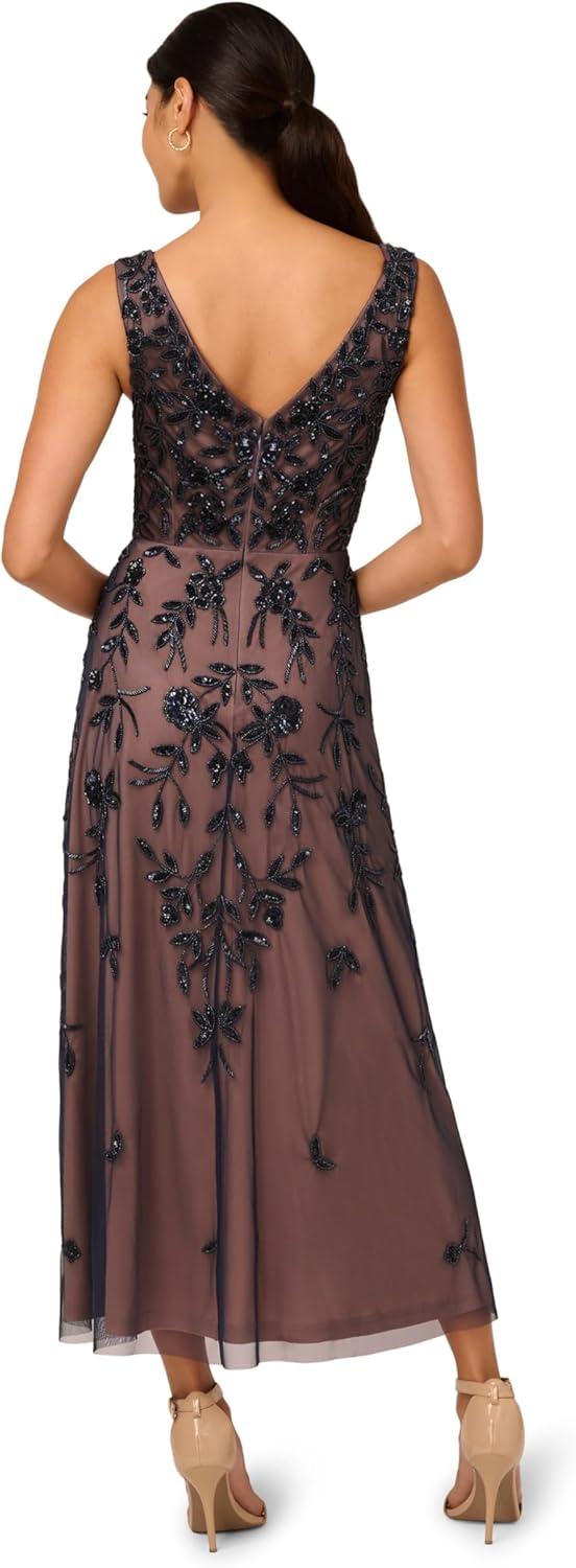 Adrianna Papell Women’s Beaded Mesh Dress(Navy/Rosegold)