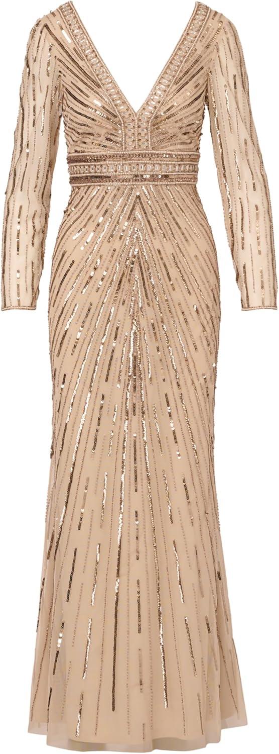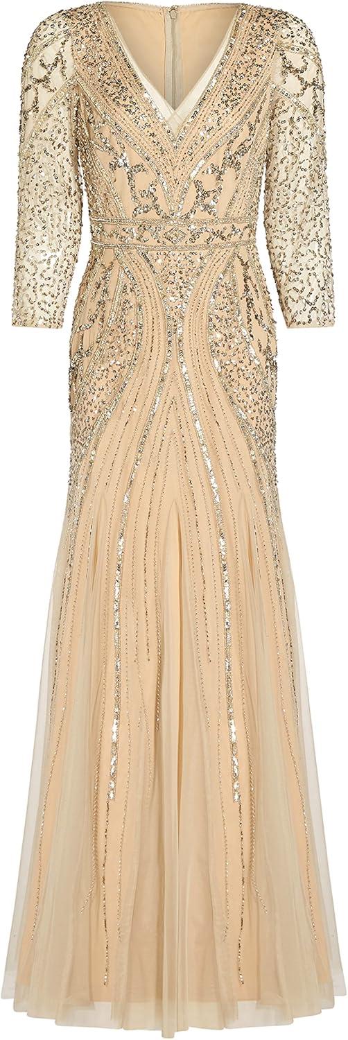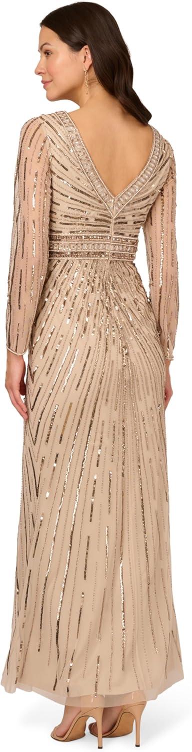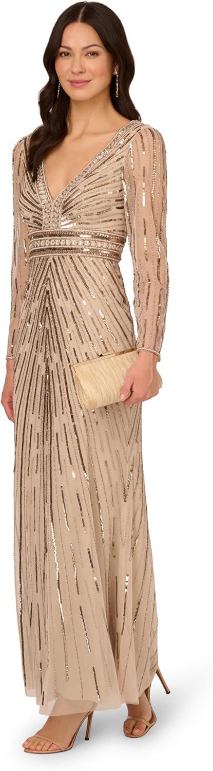 Adrianna Papell Women’s Beaded Long Dress(Biscotti)