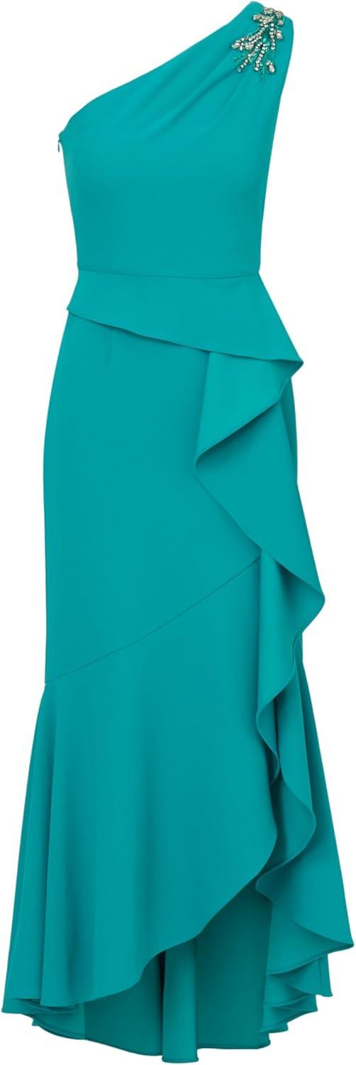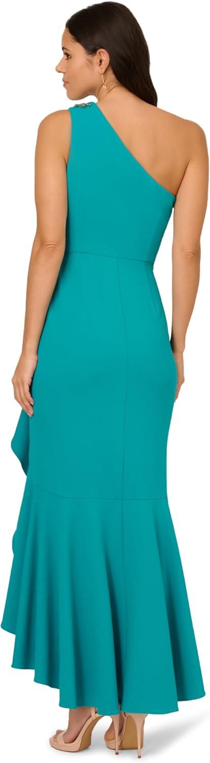 Adrianna Papell Women’s Beaded Knit Crepe Gown(Teal Lagoon)