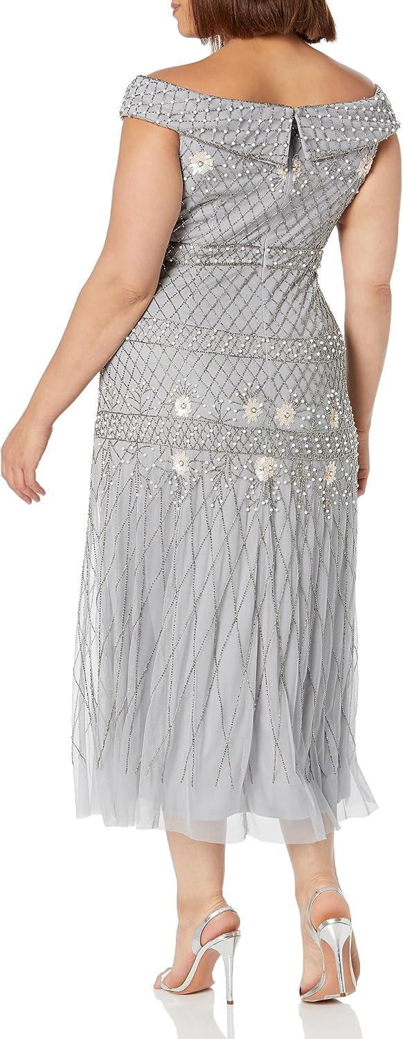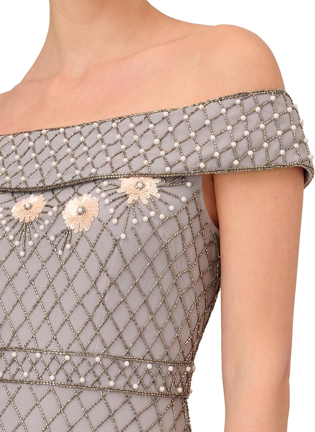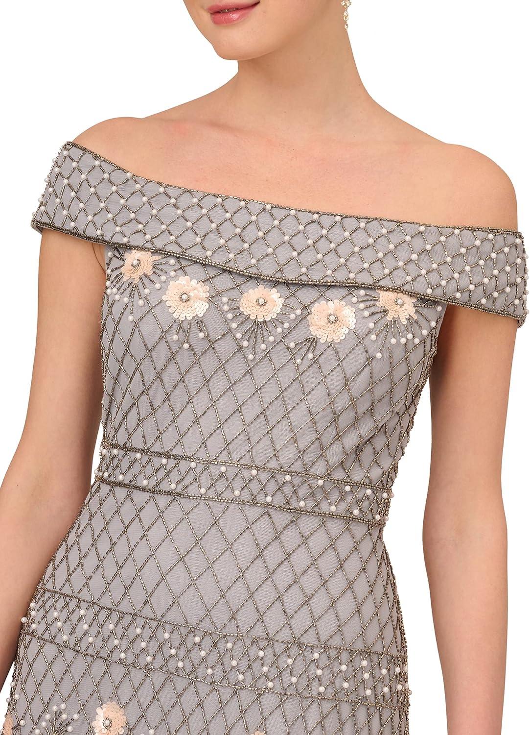 Adrianna Papell Women’s Beaded Long Dress(Silver Mist)