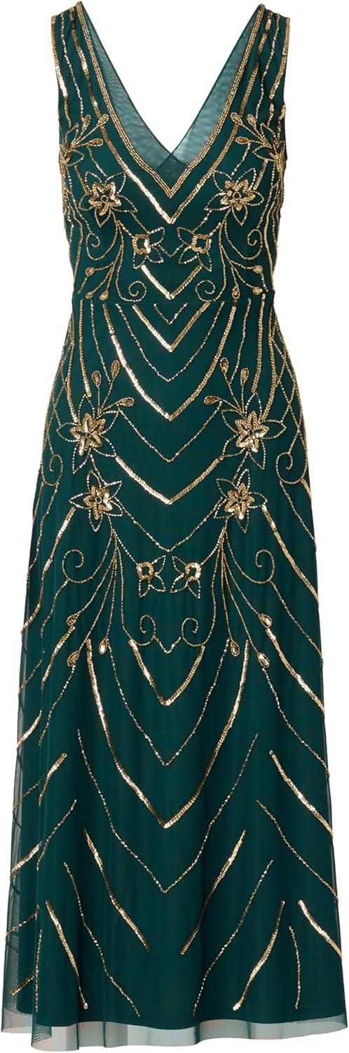 Adrianna Papell Women’s Beaded Mesh Dress(Green/Gold)