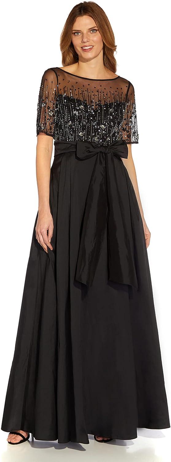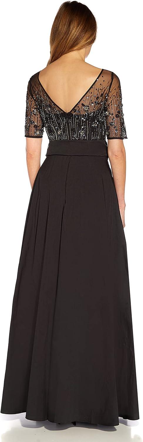 Adrianna Papell Women’s Beaded Mesh and Taffeta Gown(Black)