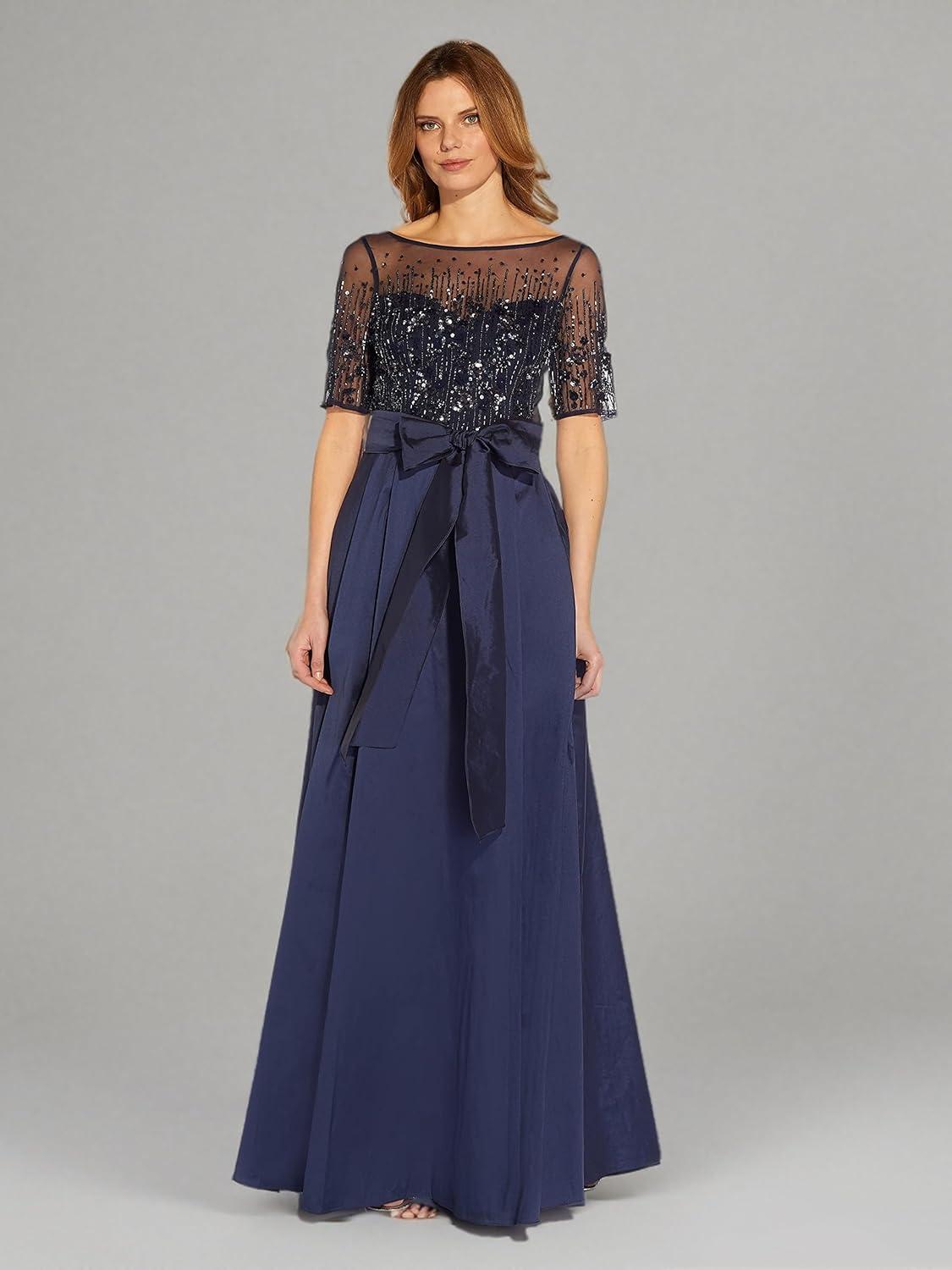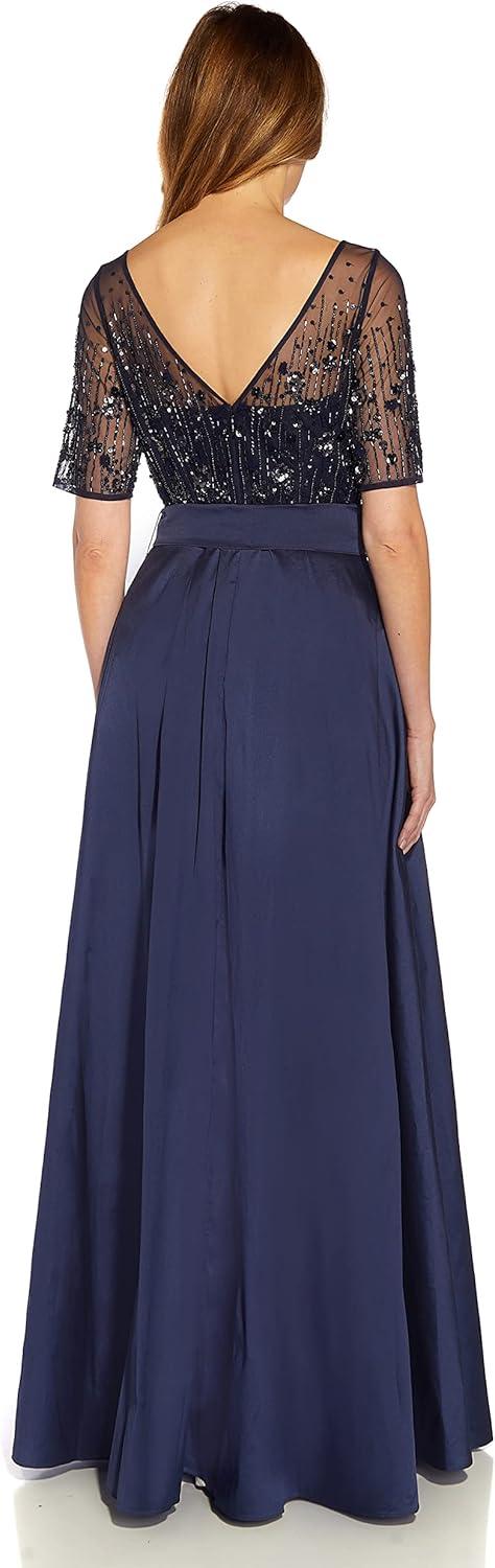 Adrianna Papell Women’s Beaded Mesh and Taffeta Gown(Navy)