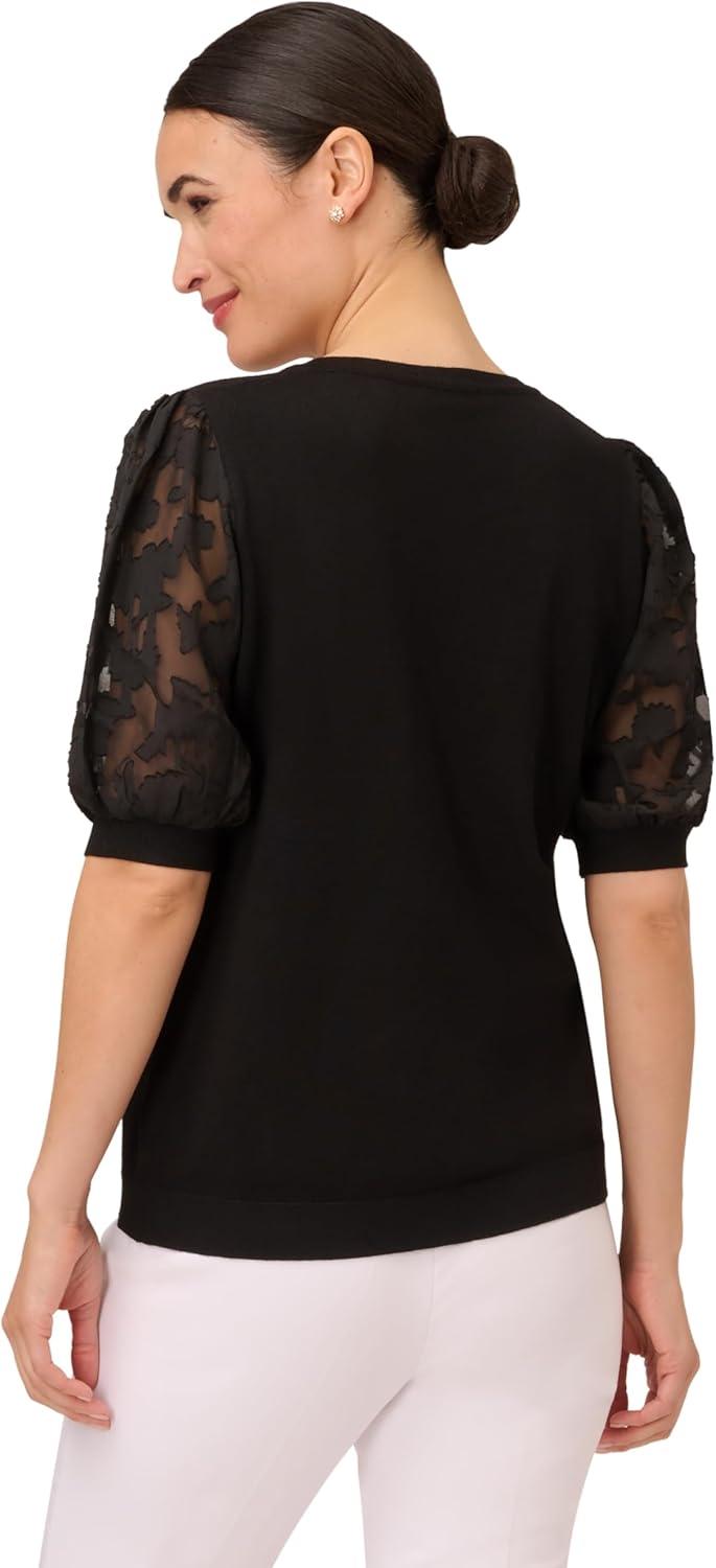 Adrianna Papell Women’s Clip Dot Sleeve Twofer Sweater(Black)