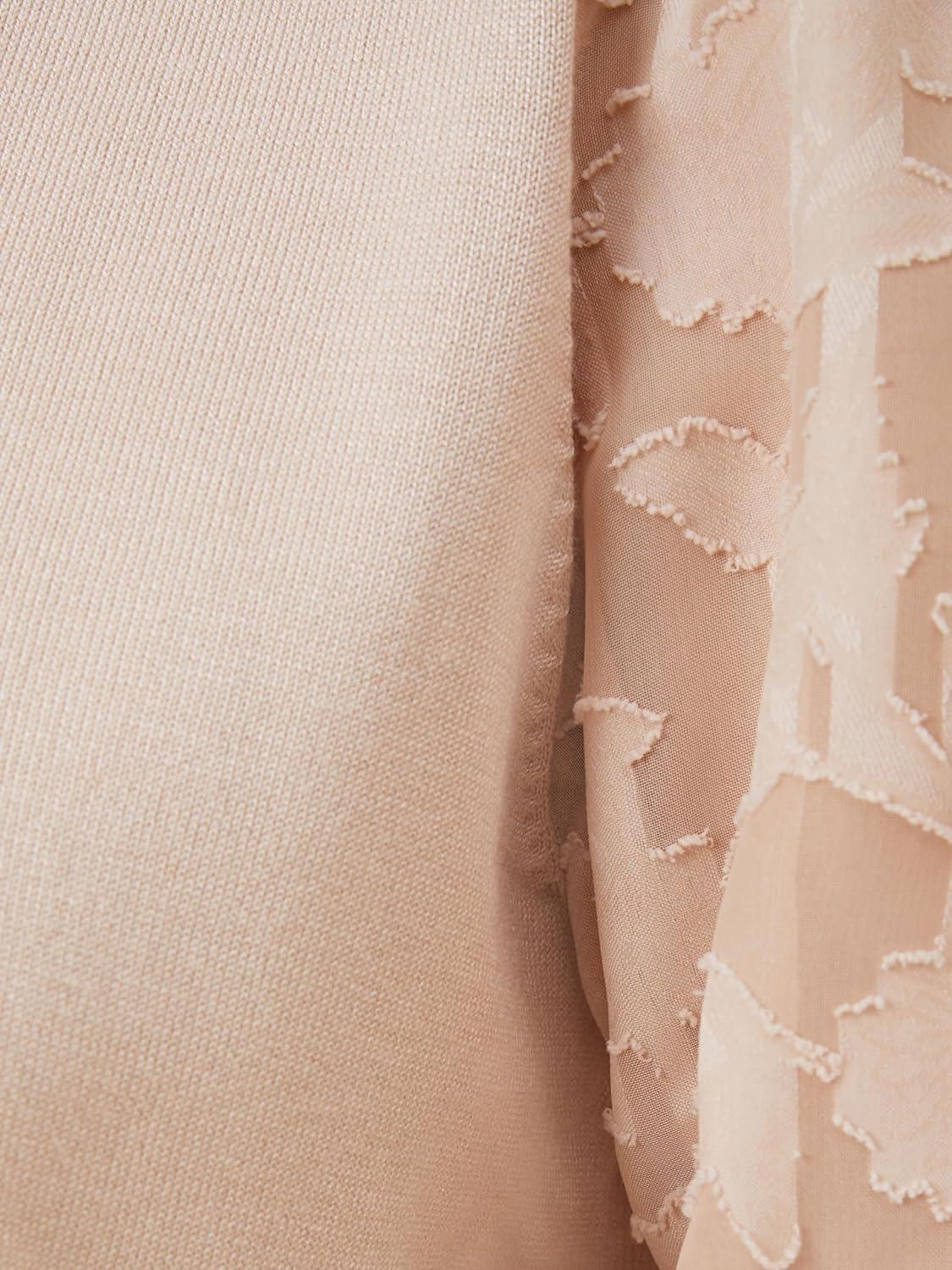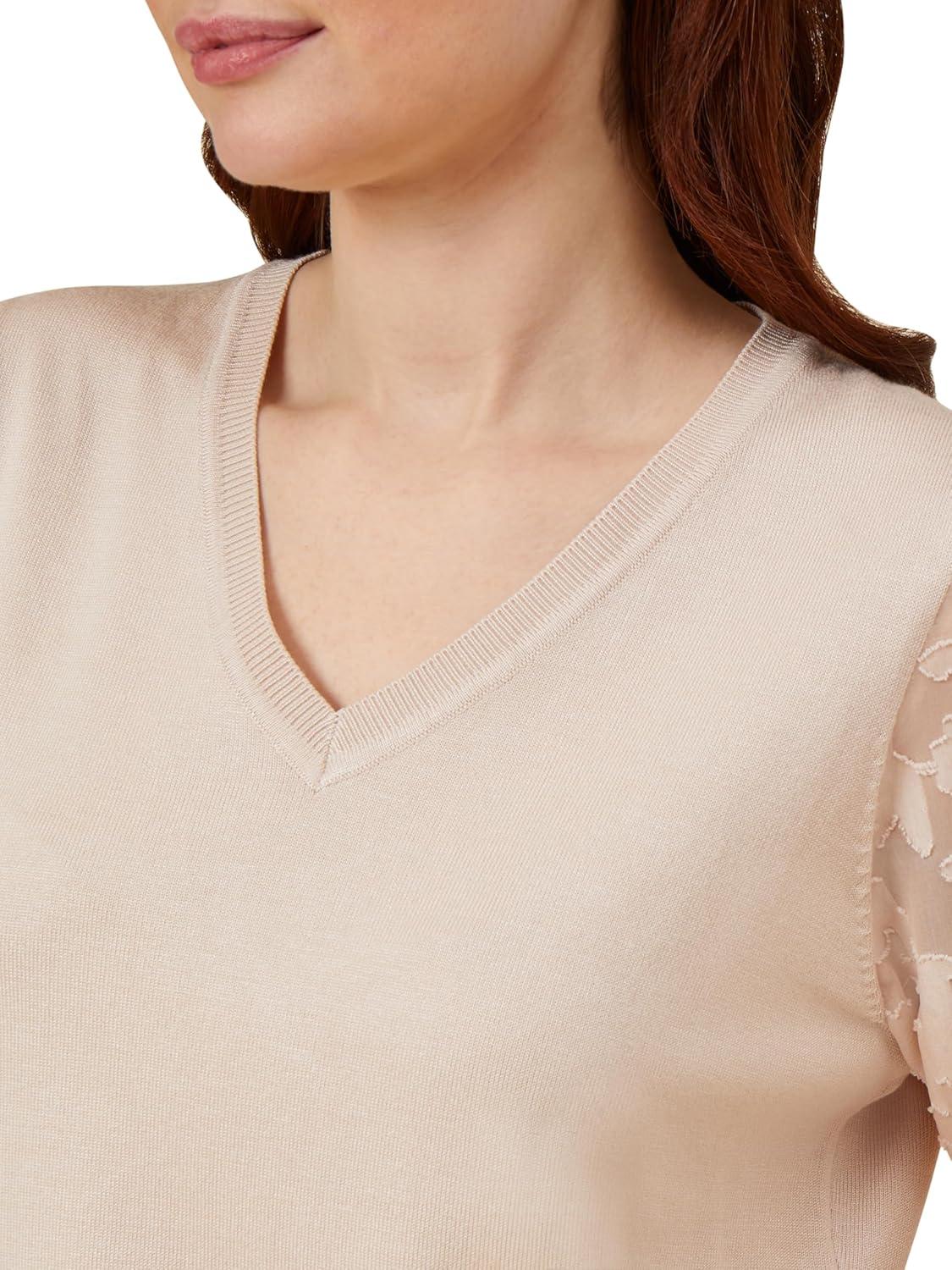 Adrianna Papell Women’s 3/4 Floral Burnout Sleeve V-Neck Sweater(Champagne Blush)