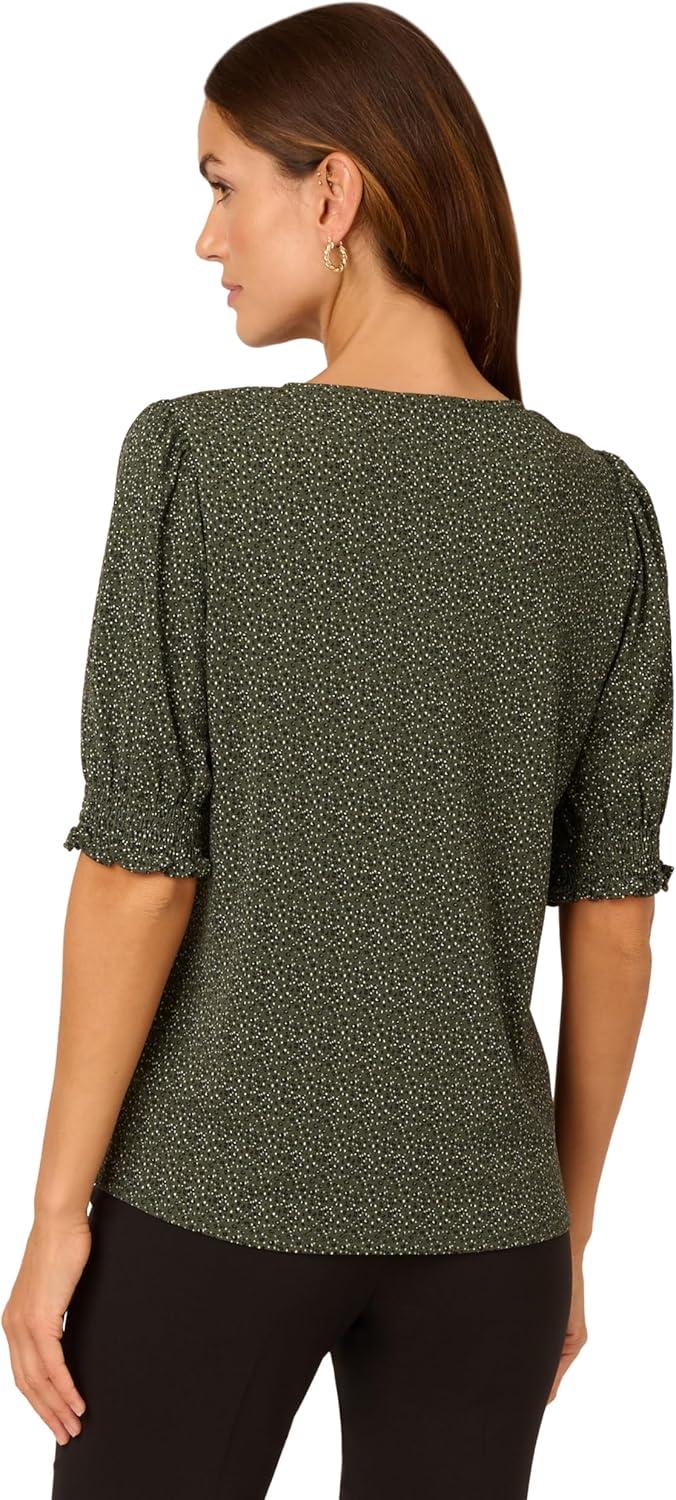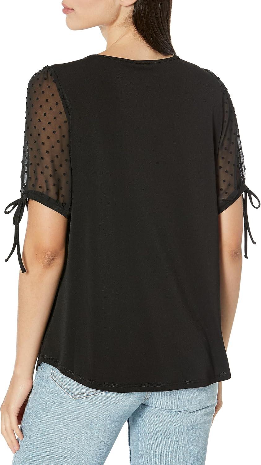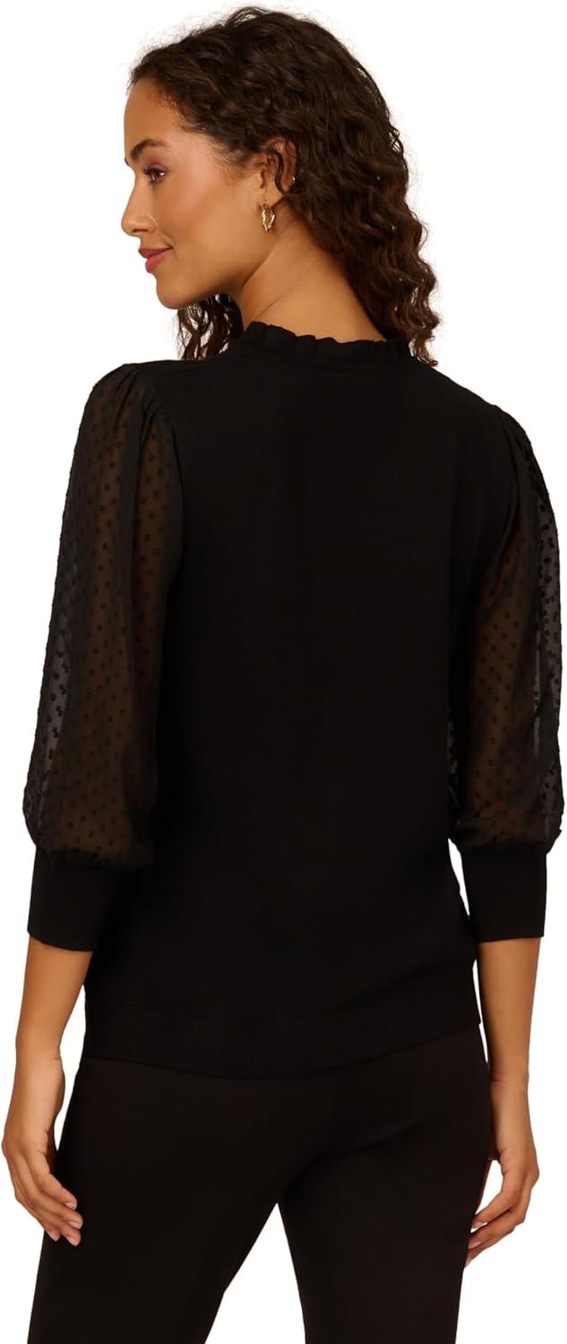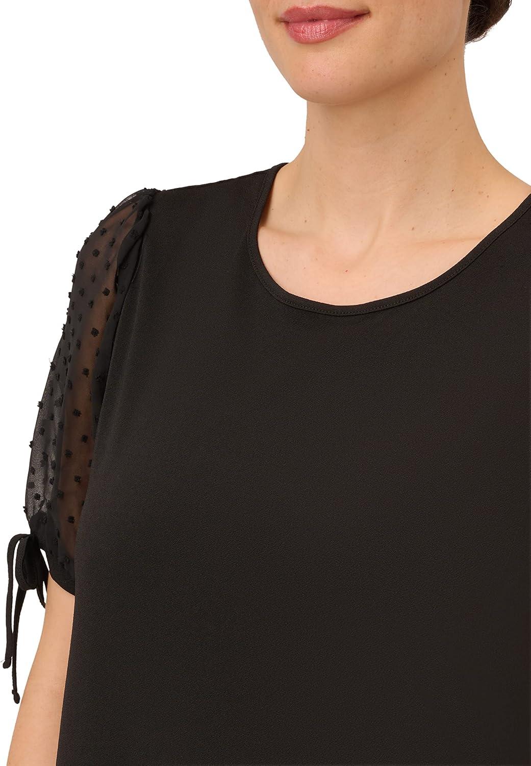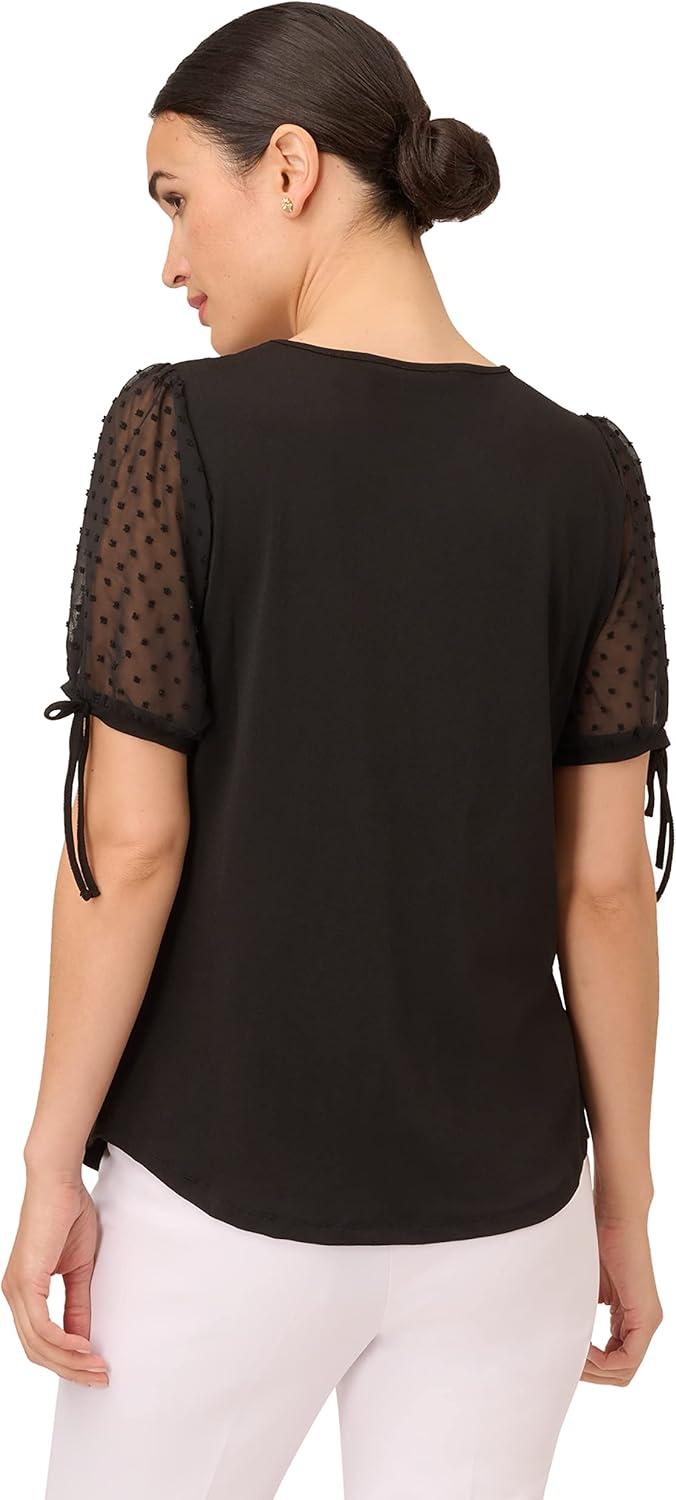 Adrianna Papell Women’s Clip Dot Tie Sleeve Solid Top(Black)
