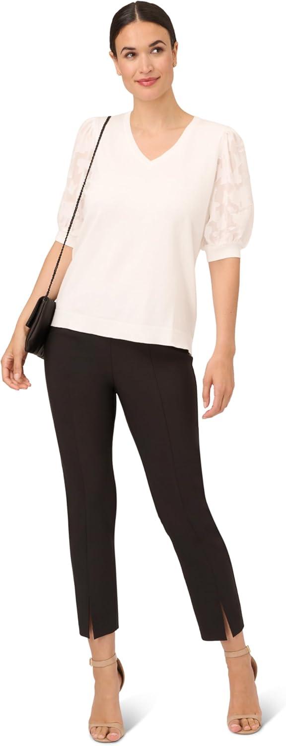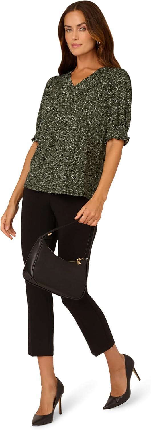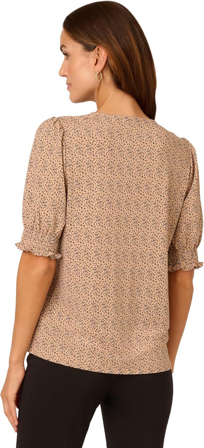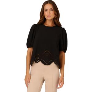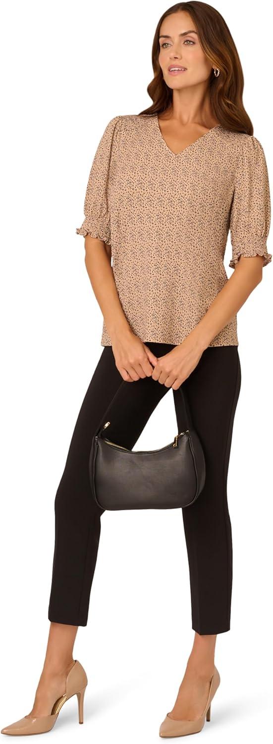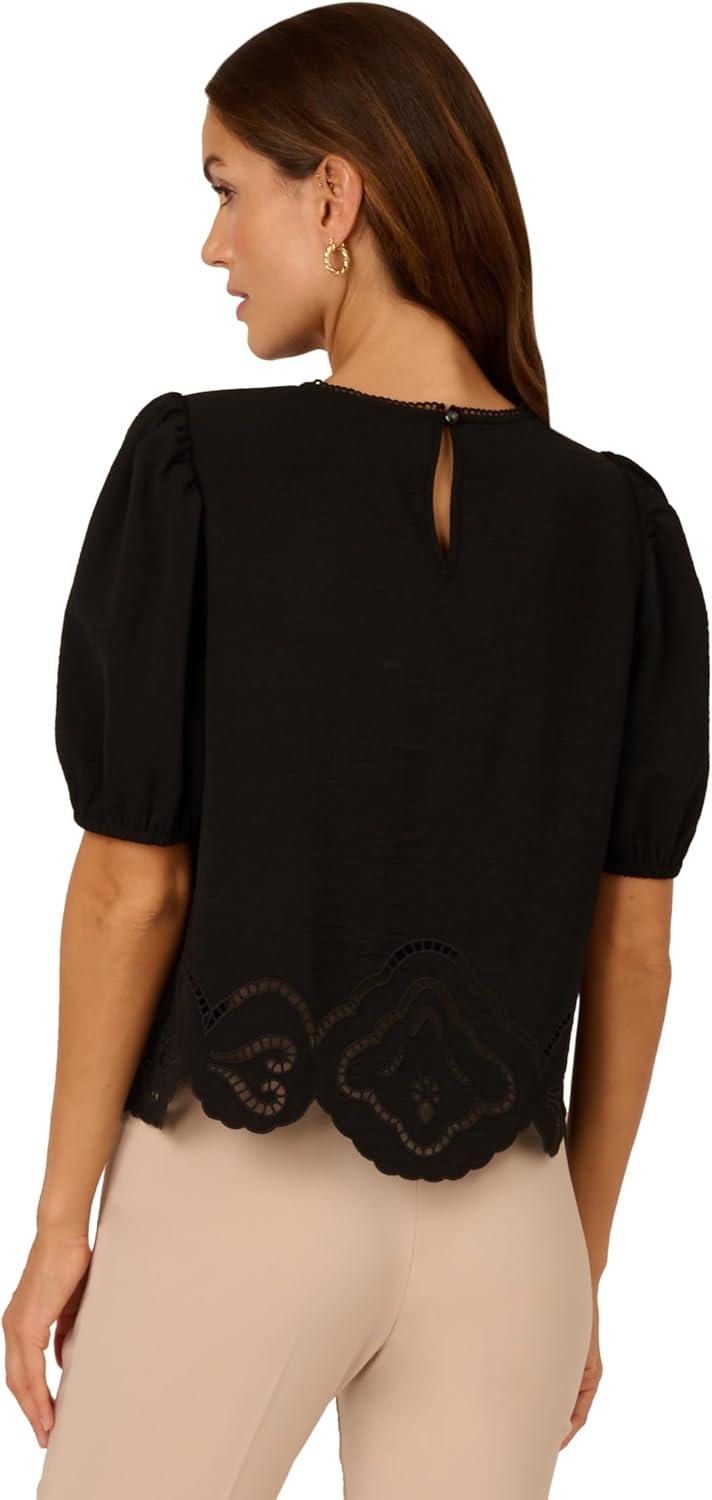 Adrianna Papell Women’s Clip Dot Tie Sleeve Solid Top(Black)