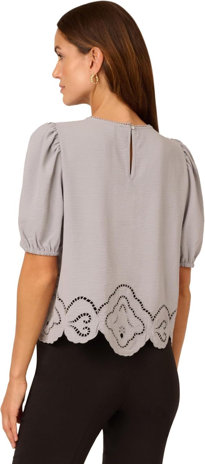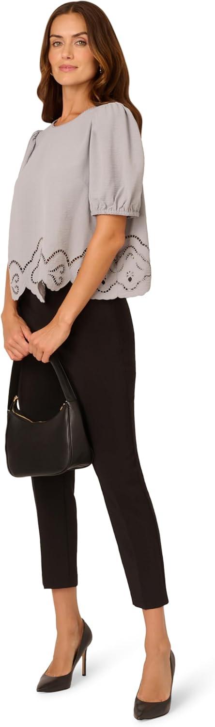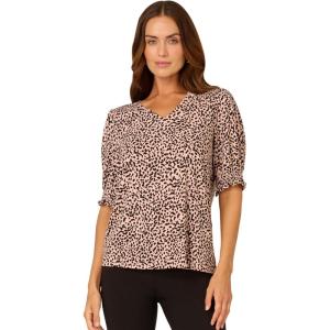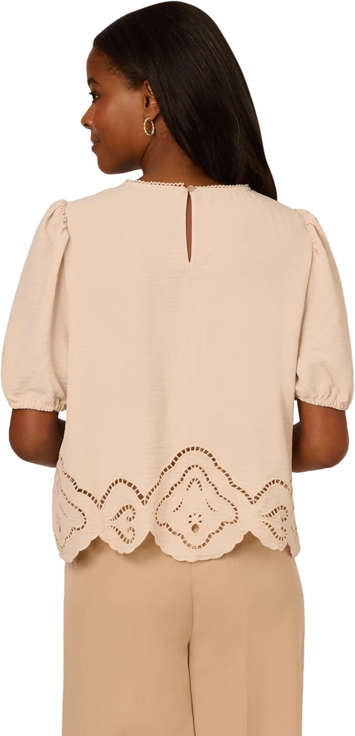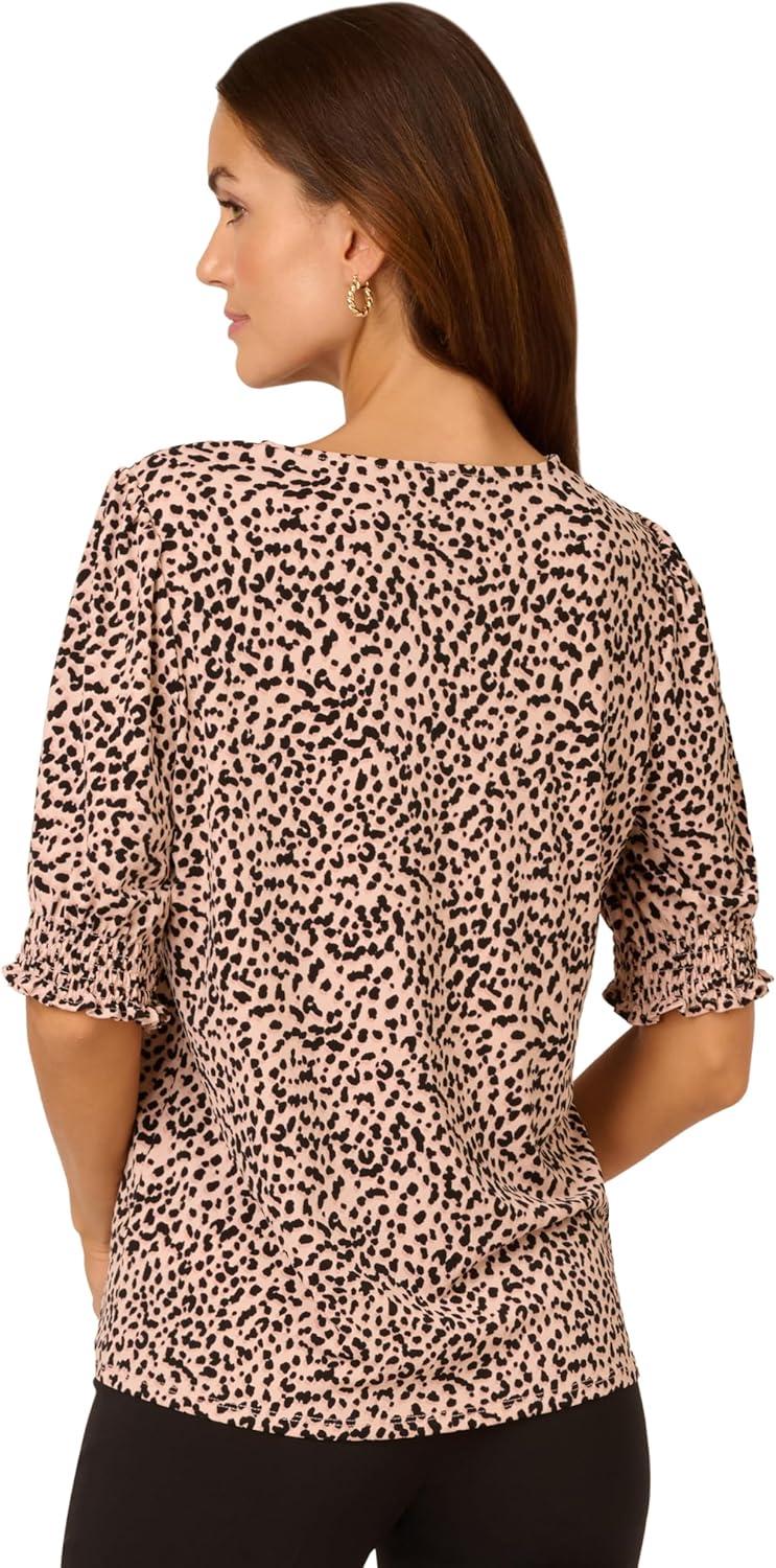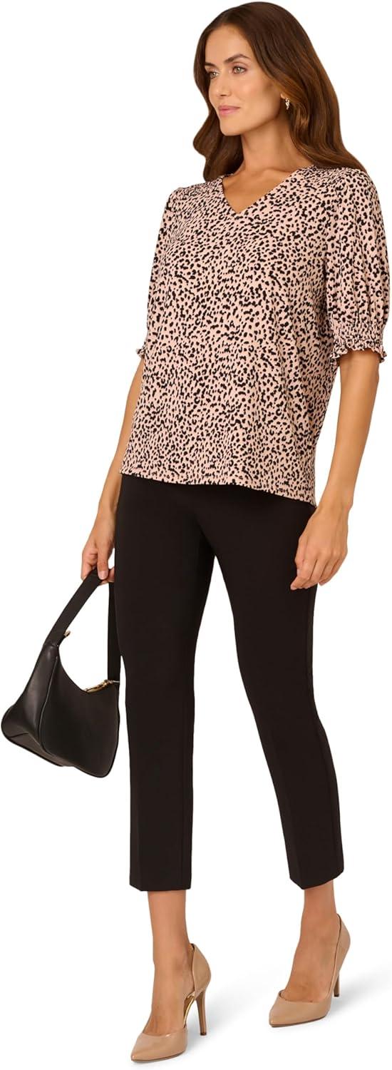 Adrianna Papell Women’s Clip Dot Tie Sleeve Solid Top(Black)