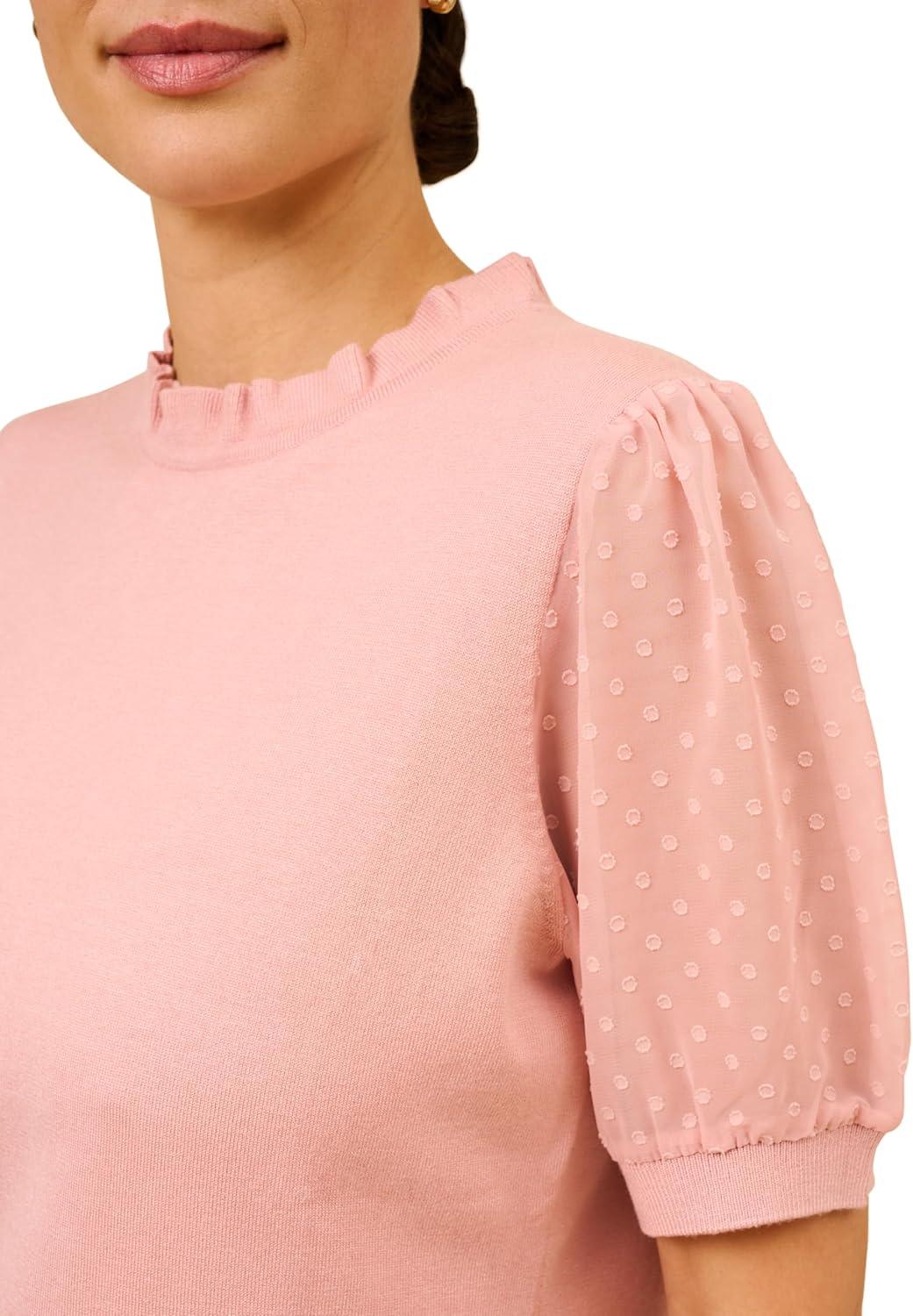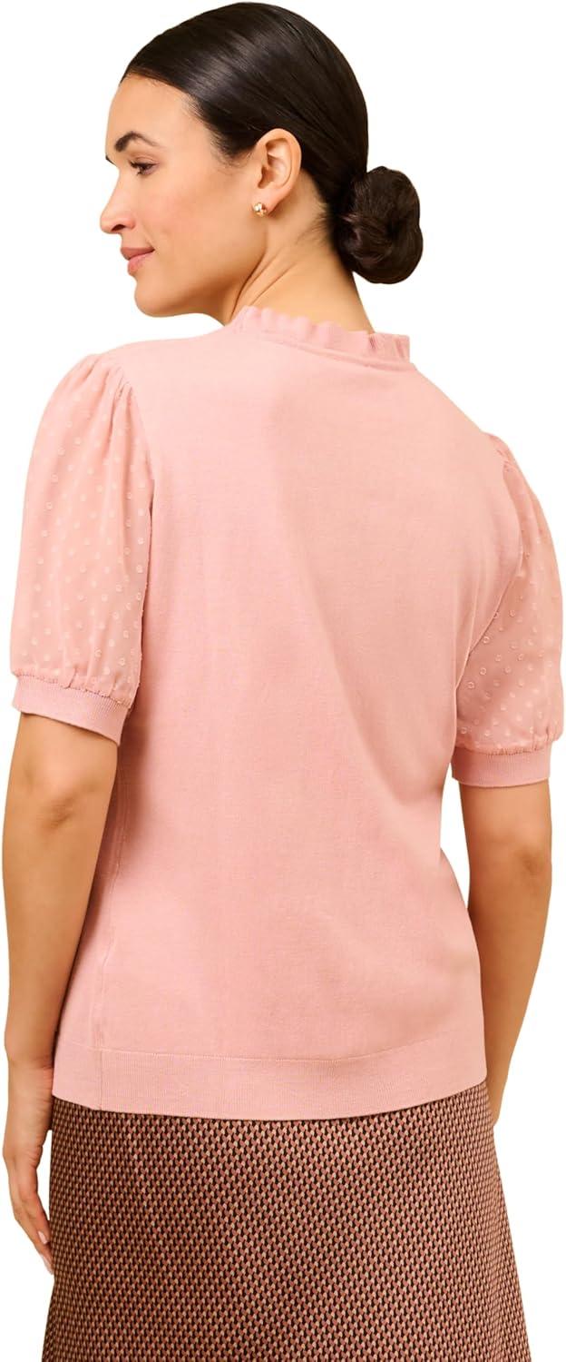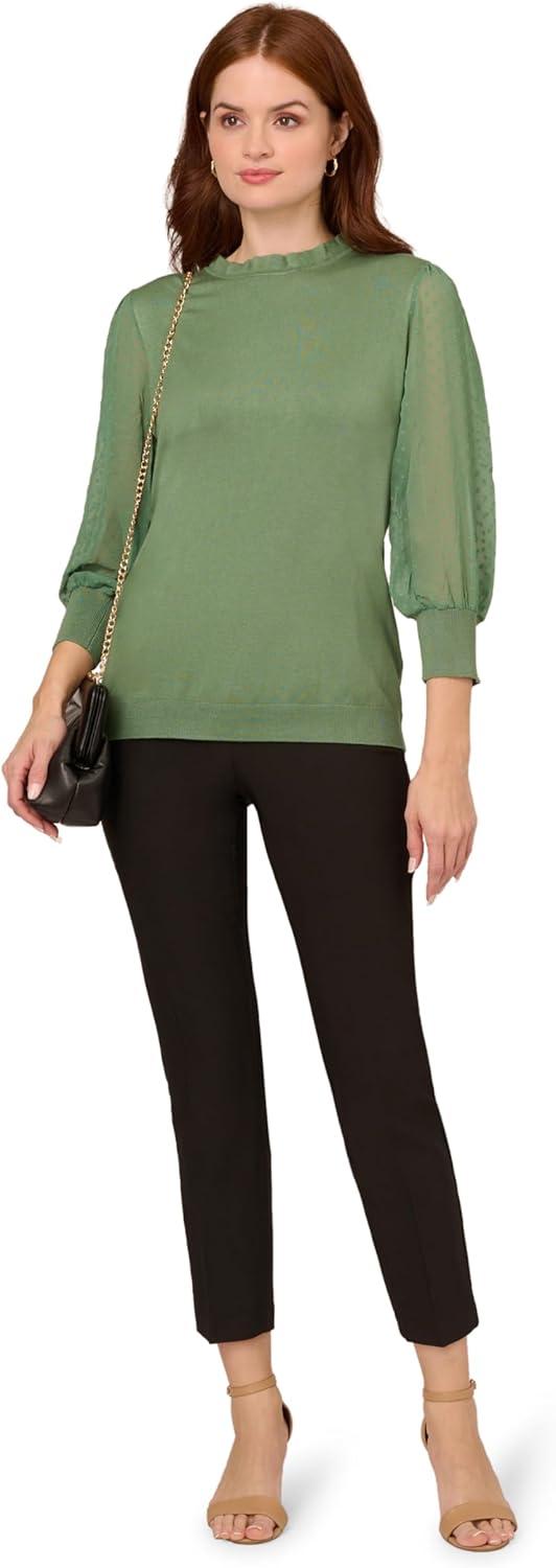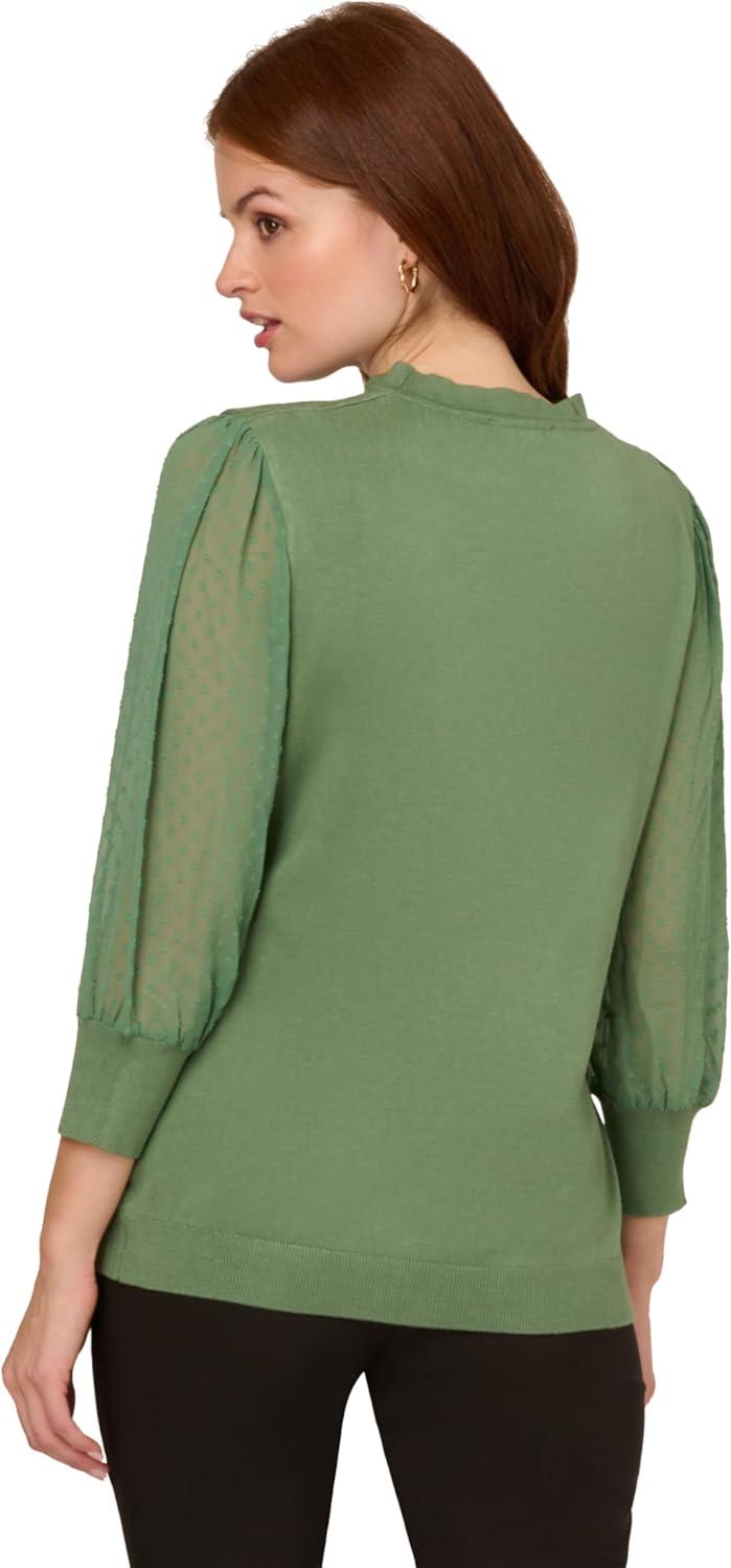 Adrianna Papell Women’s Clip Dot Sleeve Twofer Sweater(Palm Leaf)