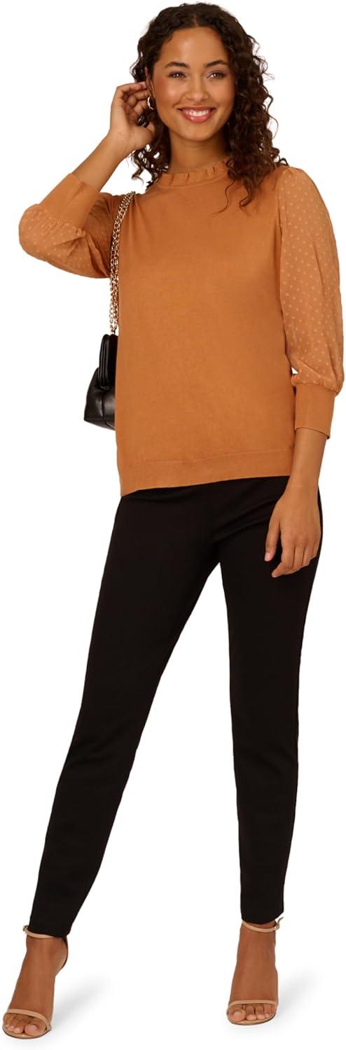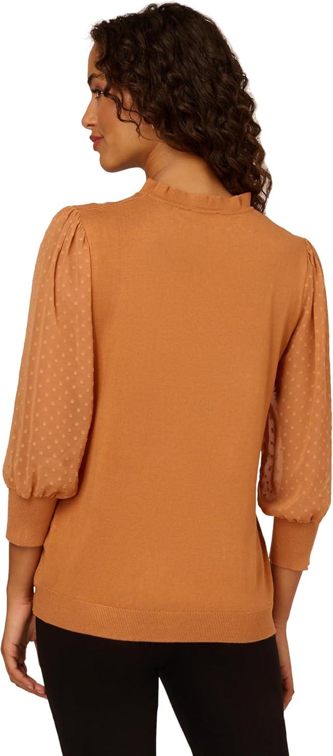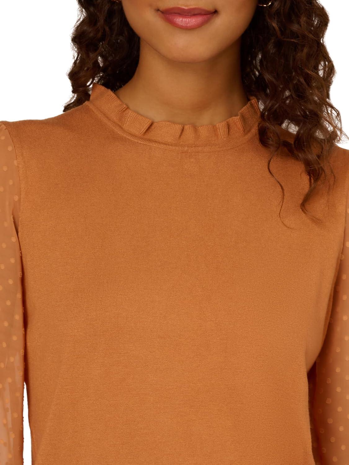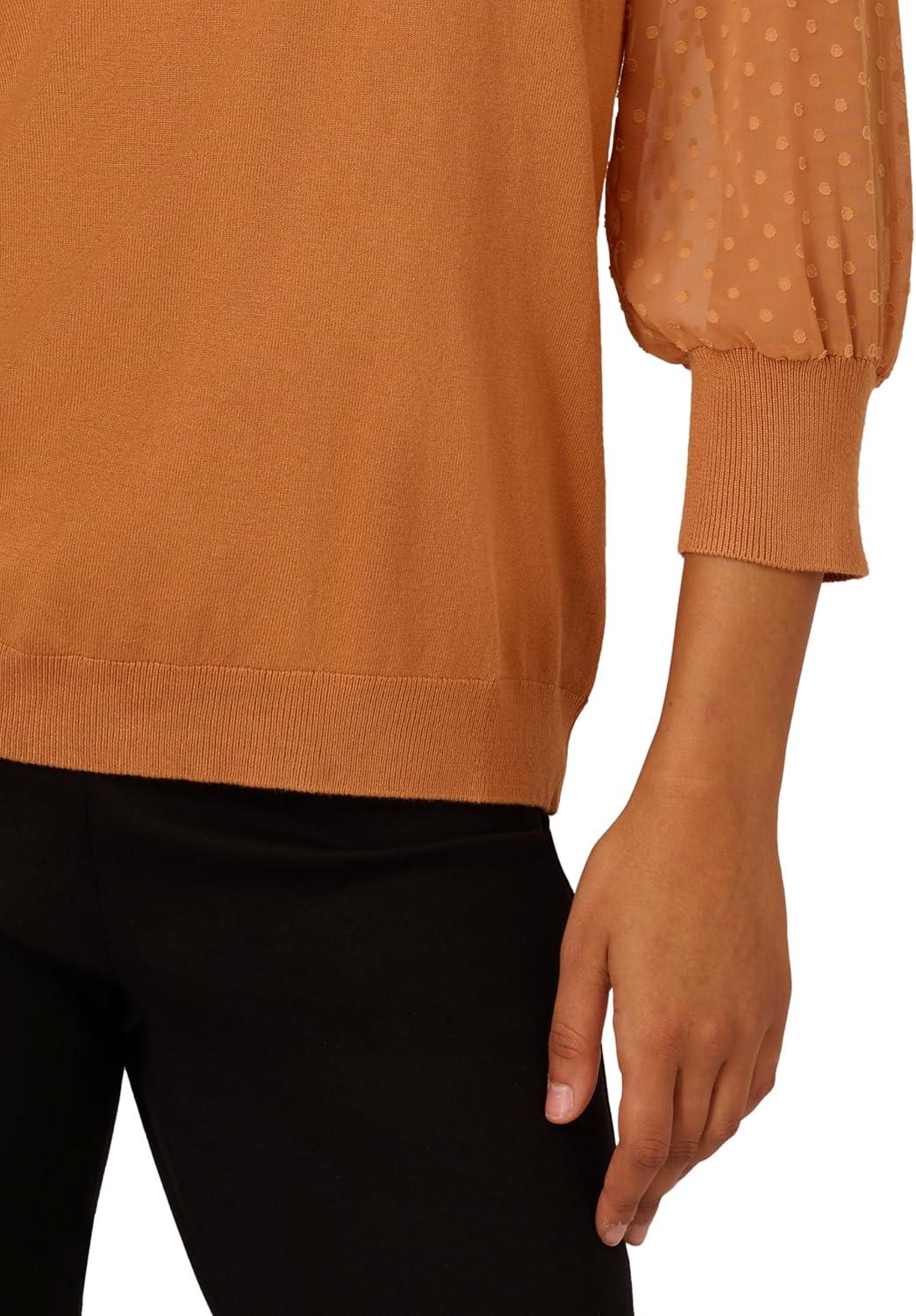 Adrianna Papell Women’s Clip Dot Sleeve Twofer Sweater(Toasted Bronze)