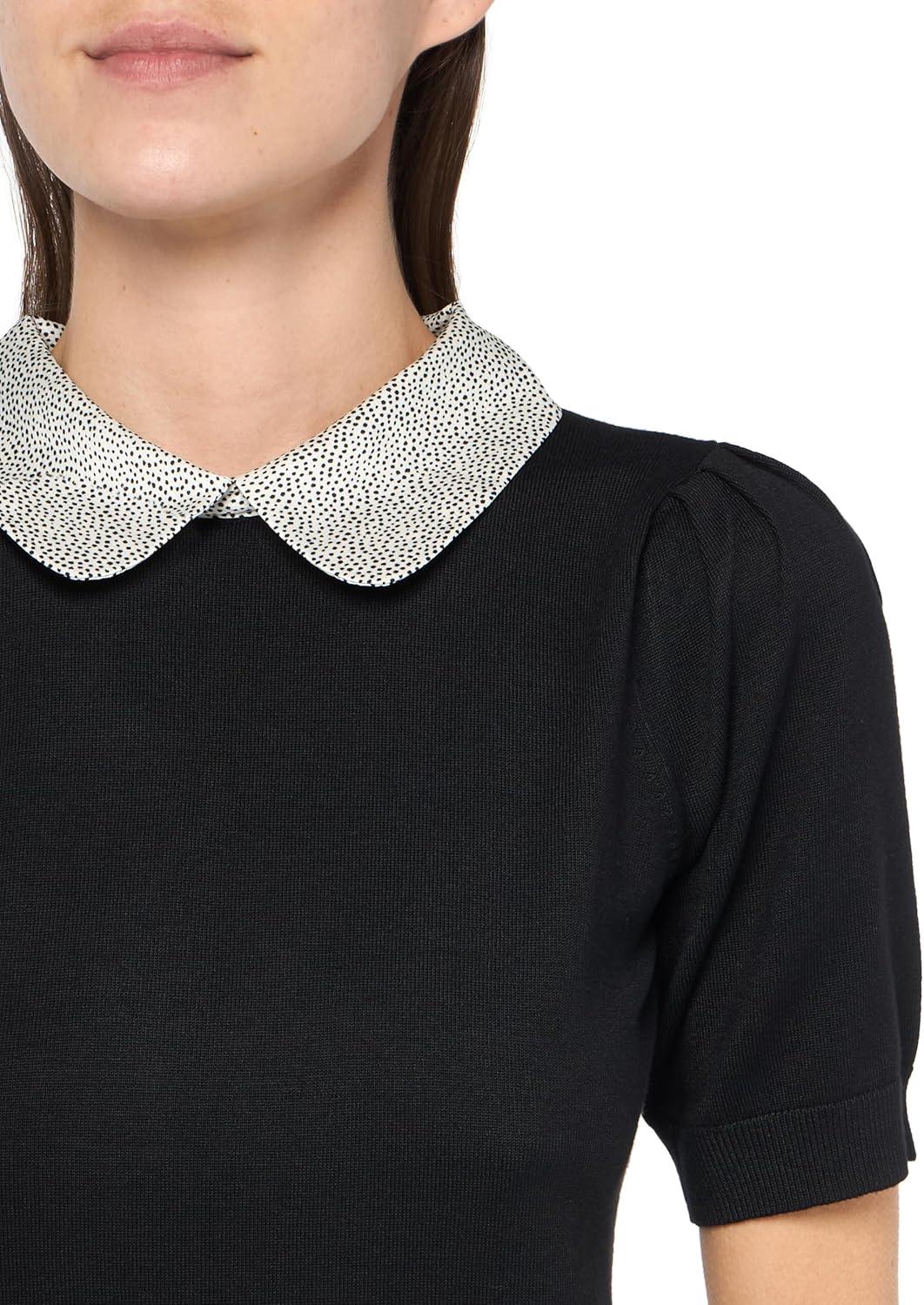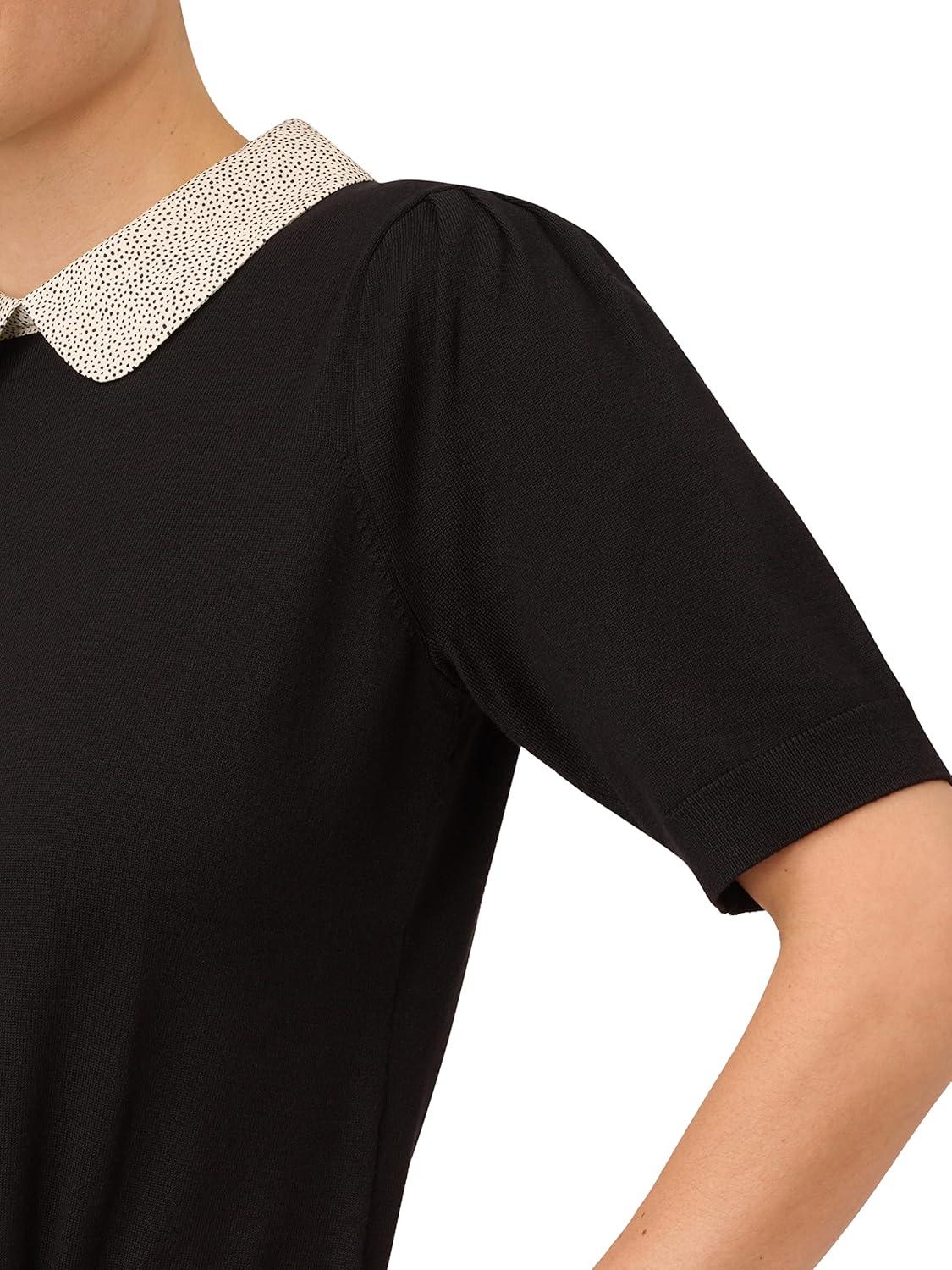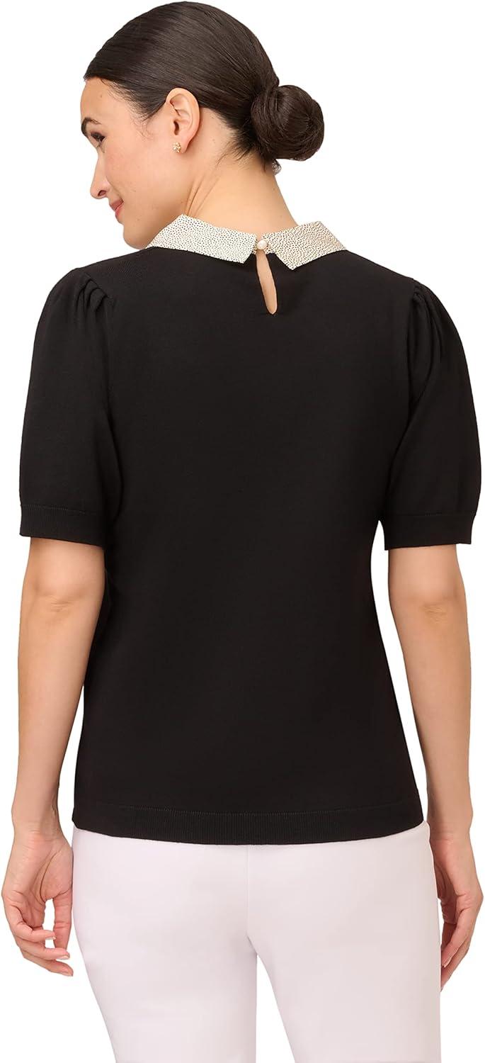 Adrianna Papell Women’s Clip Dot Sleeve Twofer Sweater(Black)