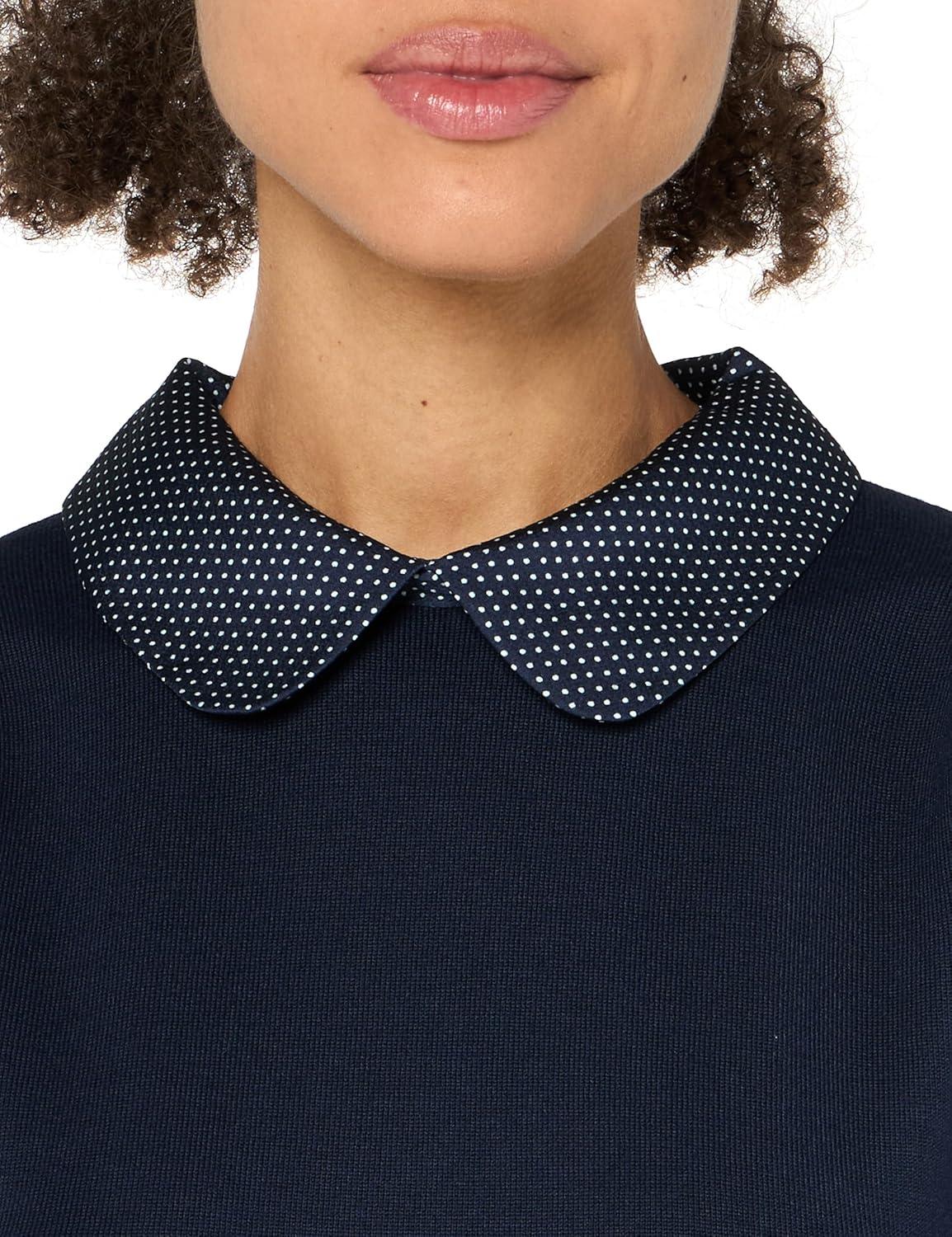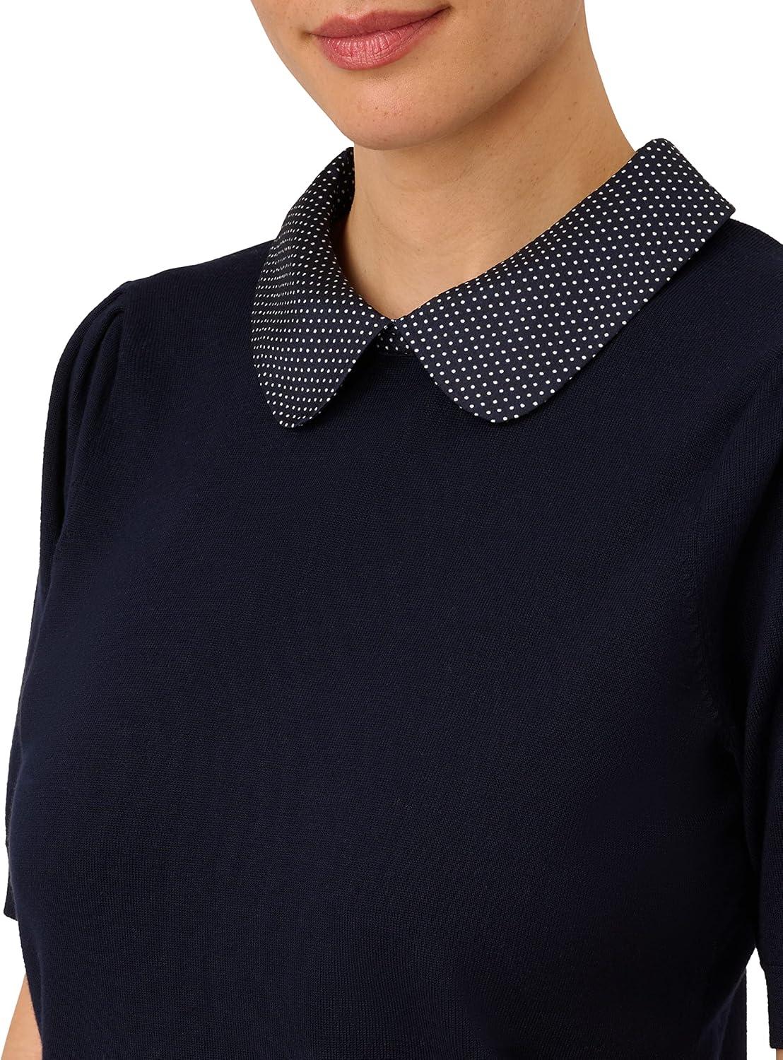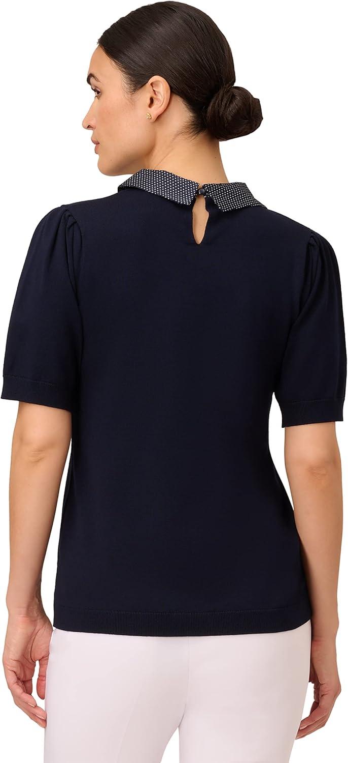 Adrianna Papell Womens Hammered Satin Collar Twofer(Navy W/ Navy/Ivory Mini Dot)