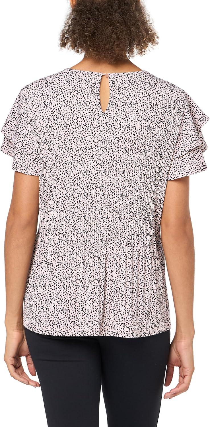 Adrianna Papell Womens Pleated Knit Double Sleeve Top(Champagne Tiny Cheetah)
