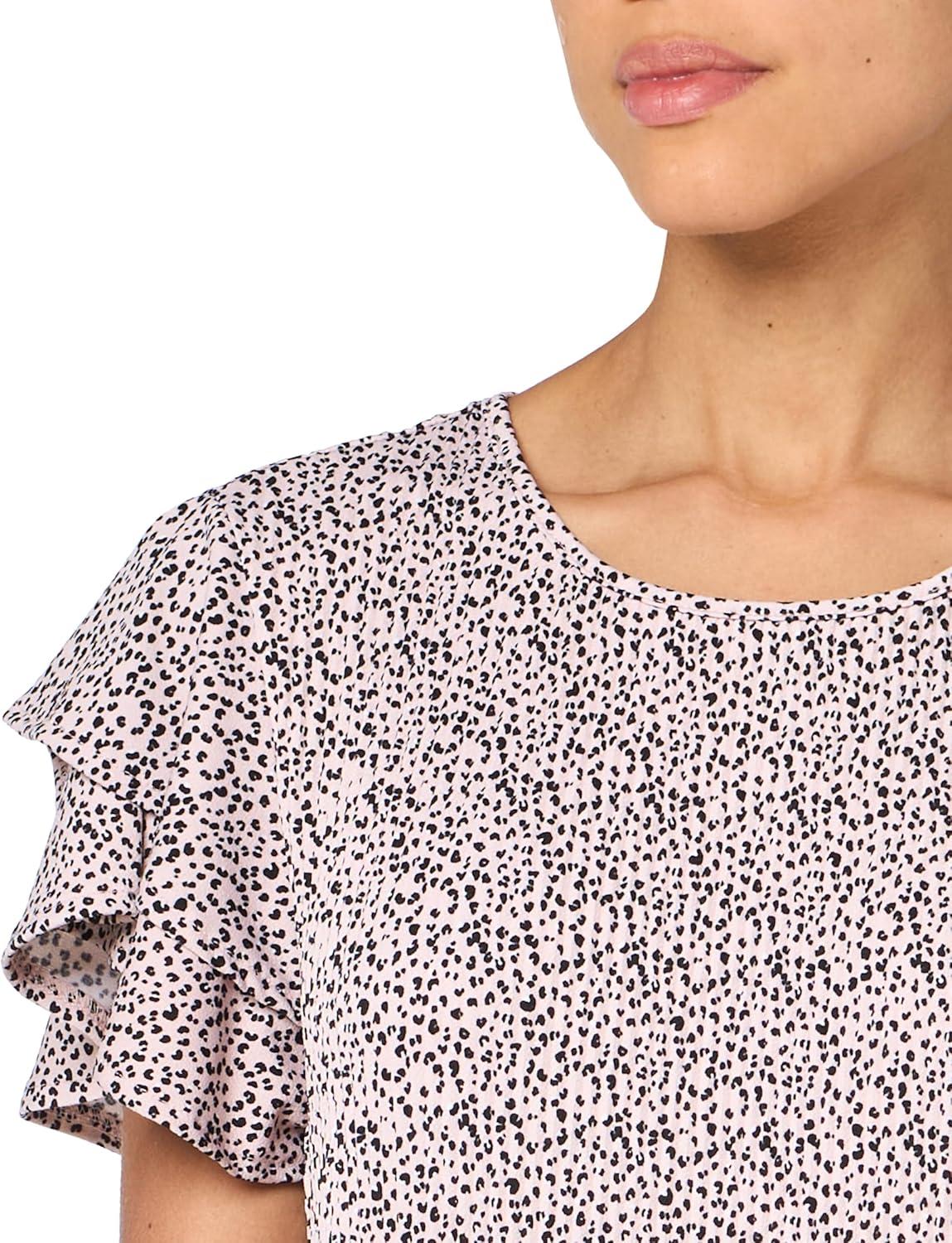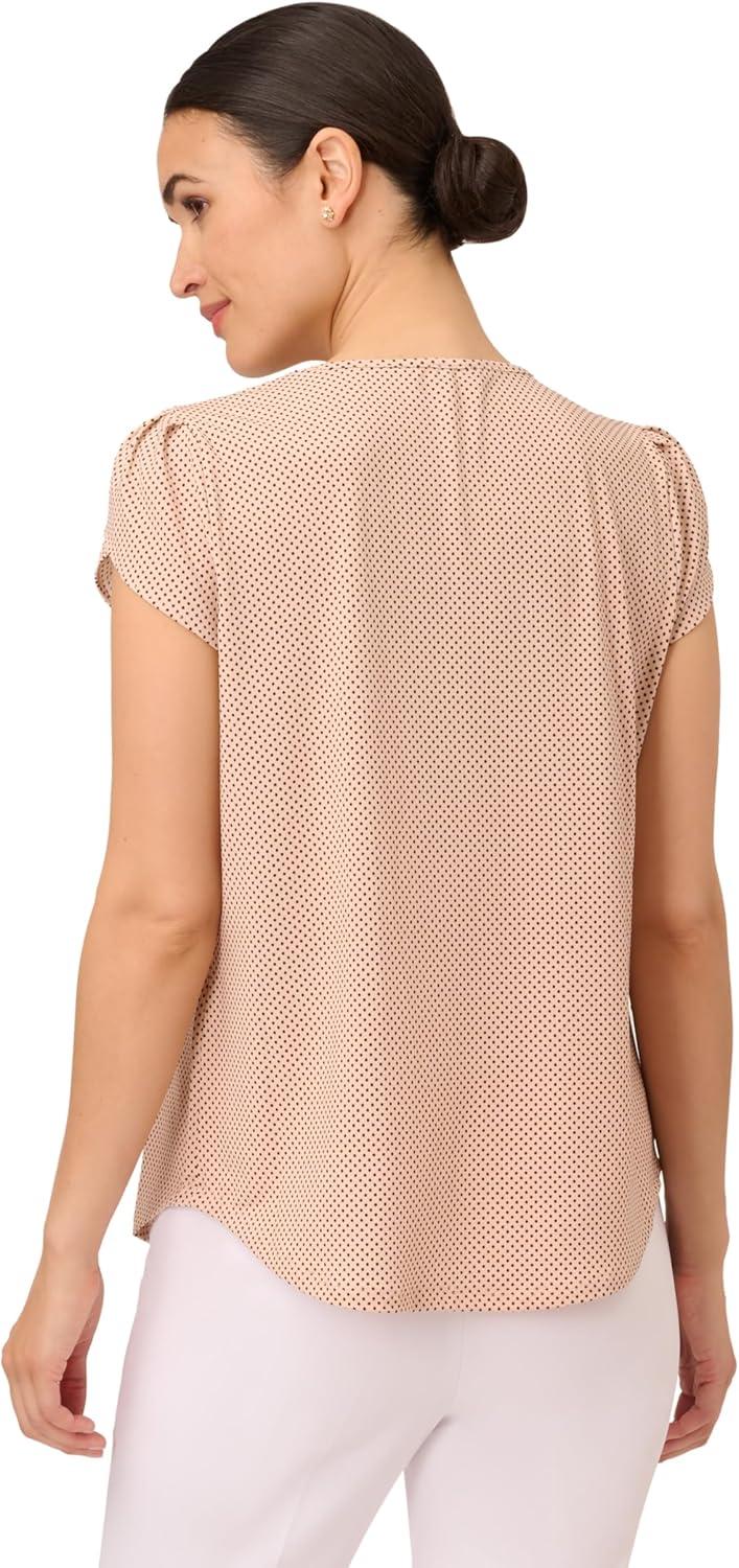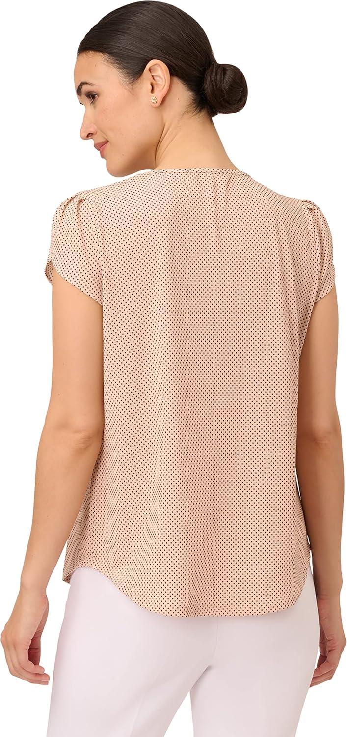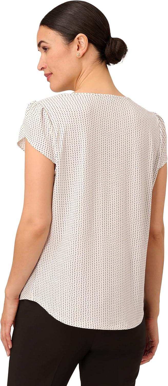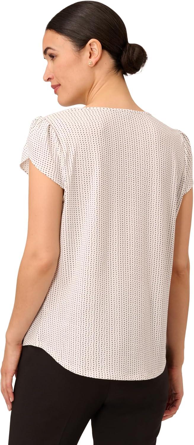 Adrianna Papell Women’s V-Neck Short Puff Sleeve Top(Ivory/Black Scatter Dot)