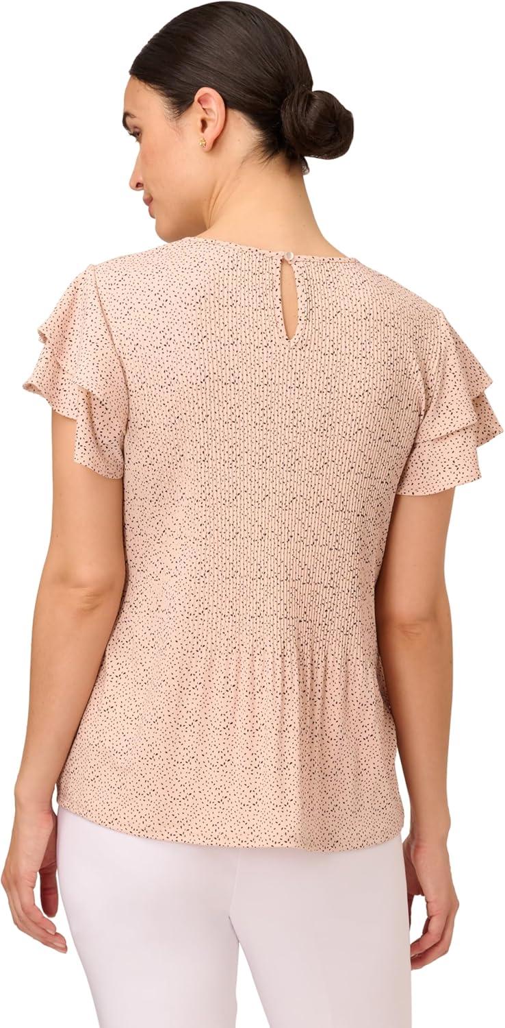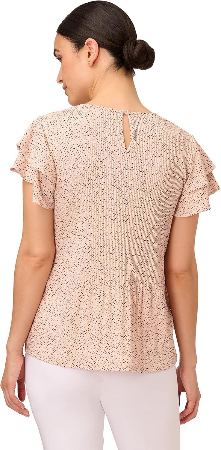 Adrianna Papell Womens Pleated Knit Double Sleeve Top(Champagne/Black Scatter Seed)
